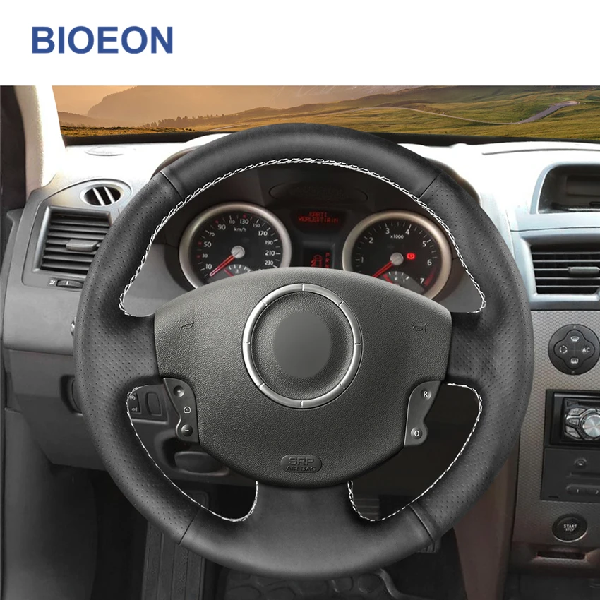 Ручная швейная черная искусственная кожа ПУ с запахом Чехлы рулевого колеса автомобиля для Renault Megane 2 Scenic 2 Grand Scenic Kangoo 2