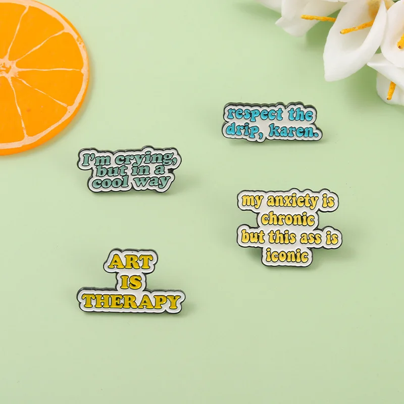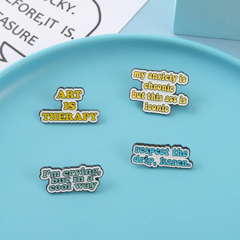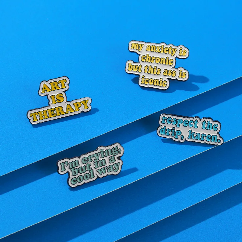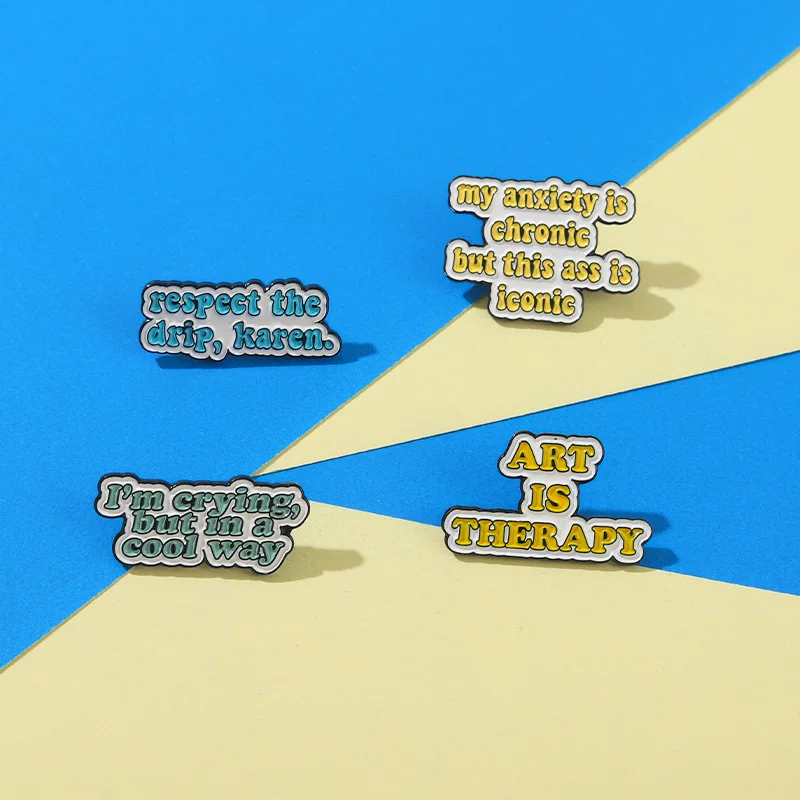 МужскаяЖенскаяМужская эмалированная брошь в виде комиксов на рюкзаке