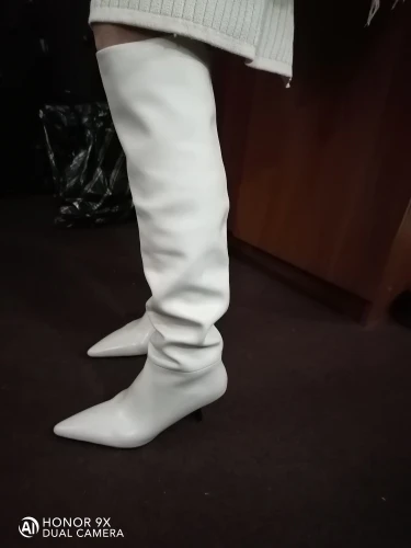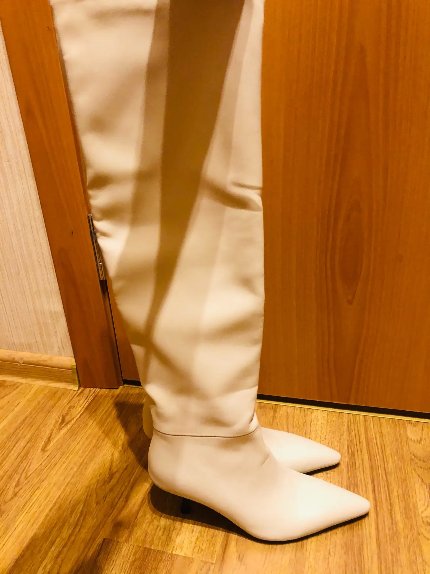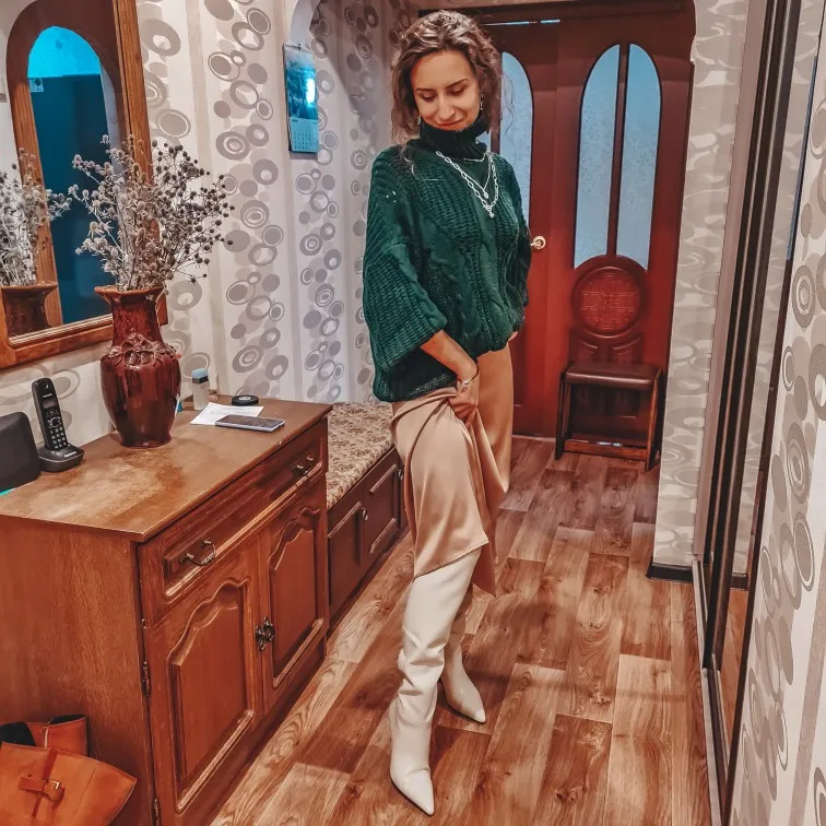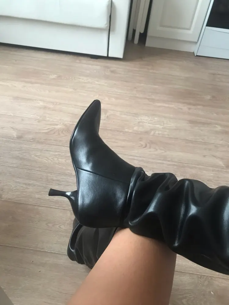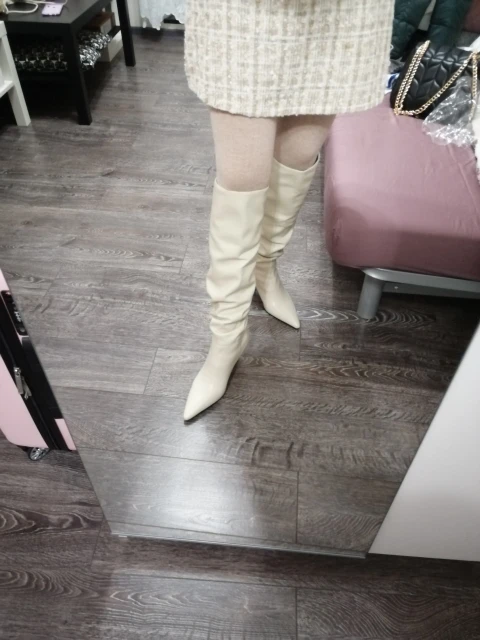 Лучшая моя обувь Али! Видела такие же в Заре, если не ошибаюсь, но они стоили 12 тысяч. Тут купила за 4300, и они прекрасны. Дошли в Иваново за 8-9 дней с доставкой в "Пятерочку". Абсолютно такие, как на картинке. Мягкие, комфортные, низкий удобный каблук, думаю, подойдут даже для повседневной носки, если аккуратно. Высокие, по колено, у меня закрывают чашечку. Нос длинный, да, но это такая модель. По размеру: на свой российский 38 (длина стельки 24,5) заказала 8, и они чуть свободны, но благодаря этой свободе можно комфортно натягивать (молнии нет) и комфортно носить. Выглядят, как хороший массмаркет типа зары. Стильные, удобные, очень довольна, спасибо продавцу