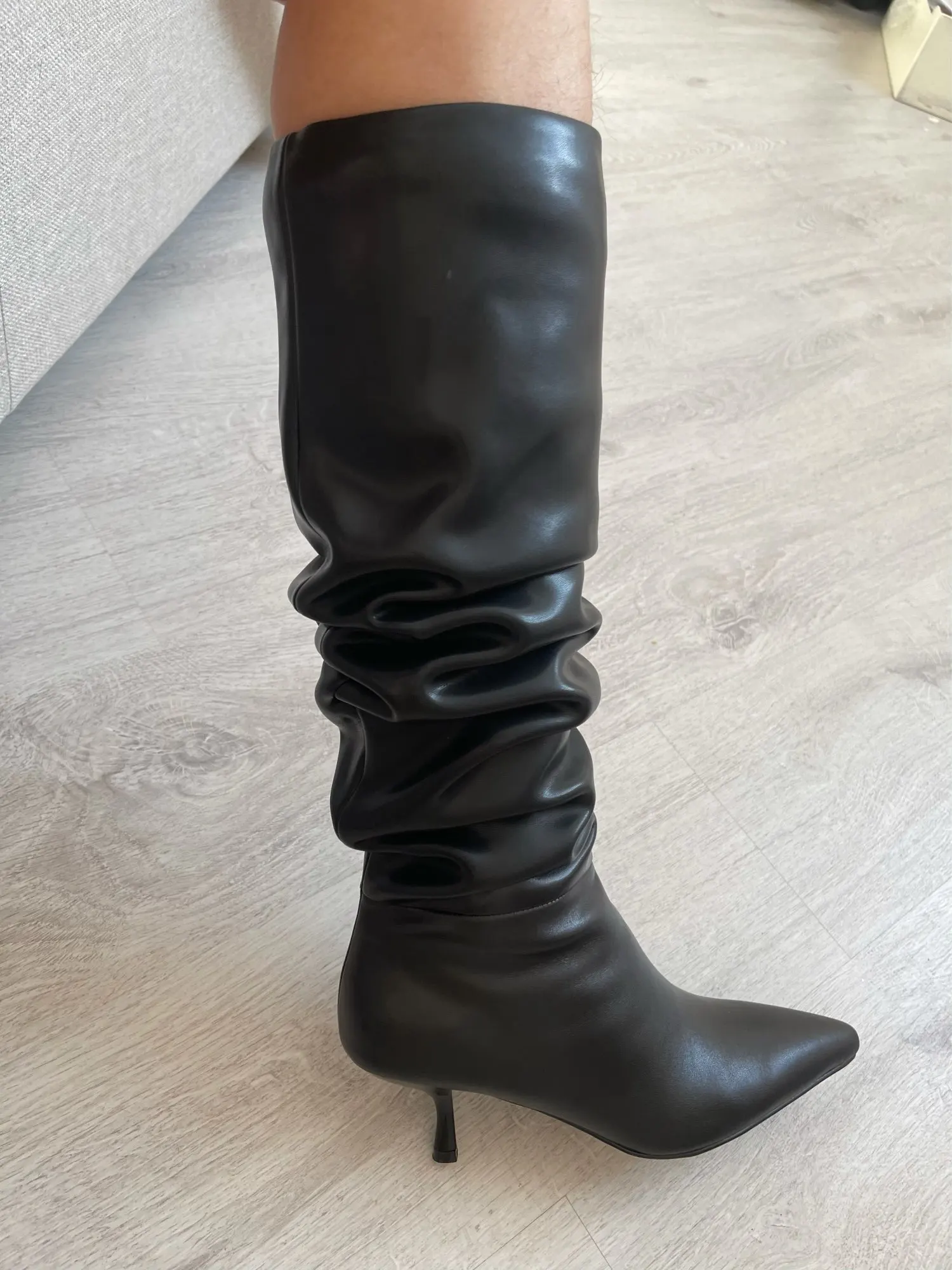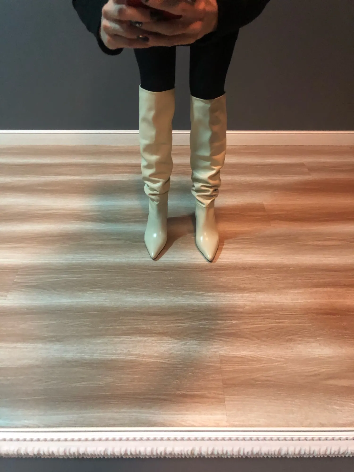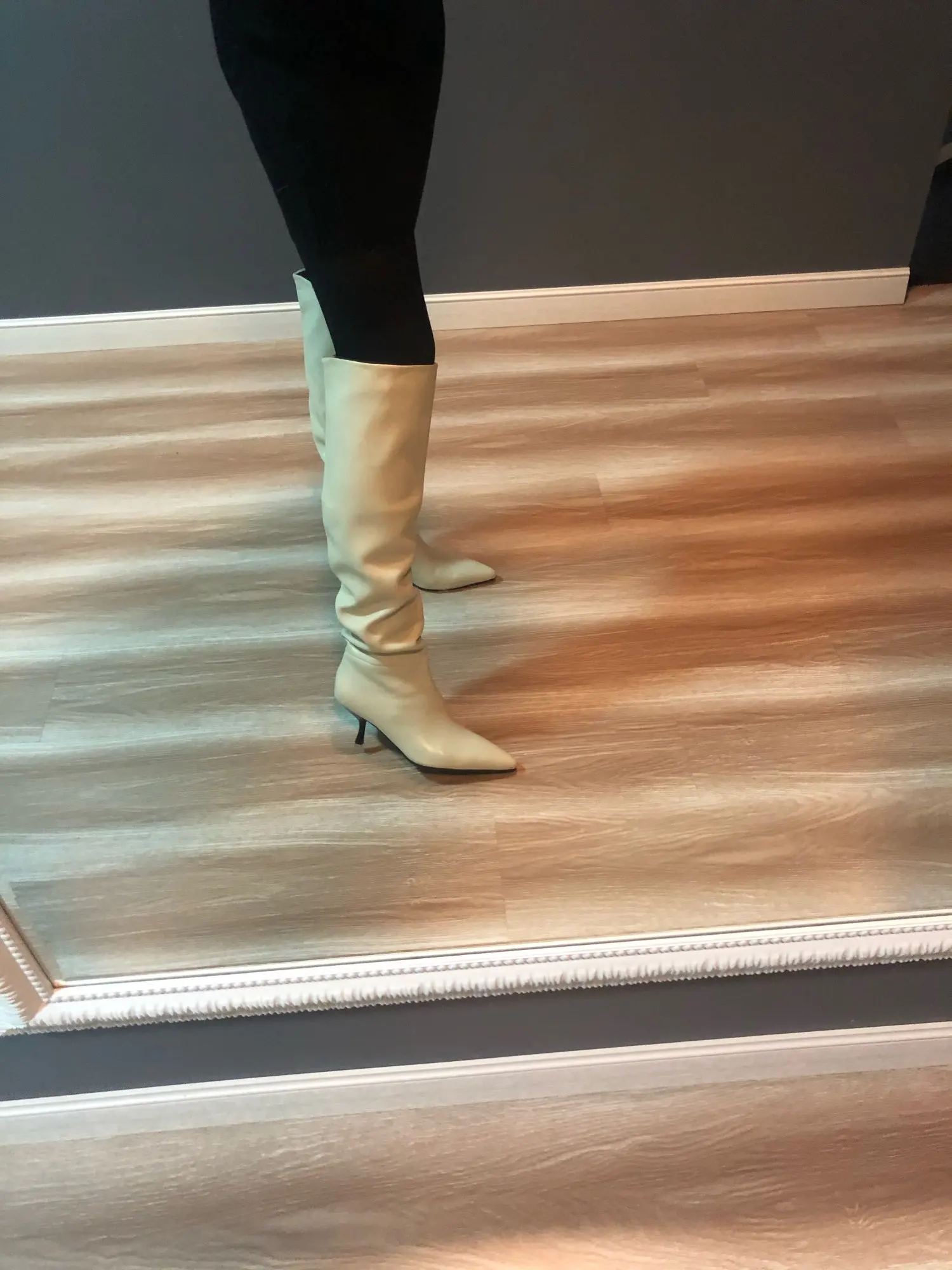 Лучшая моя обувь Али! Видела такие же в Заре, если не ошибаюсь, но они стоили 12 тысяч. Тут купила за 4300, и они прекрасны. Дошли в Иваново за 8-9 дней с доставкой в "Пятерочку". Абсолютно такие, как на картинке. Мягкие, комфортные, низкий удобный каблук, думаю, подойдут даже для повседневной носки, если аккуратно. Высокие, по колено, у меня закрывают чашечку. Нос длинный, да, но это такая модель. По размеру: на свой российский 38 (длина стельки 24,5) заказала 8, и они чуть свободны, но благодаря этой свободе можно комфортно натягивать (молнии нет) и комфортно носить. Выглядят, как хороший массмаркет типа зары. Стильные, удобные, очень довольна, спасибо продавцу