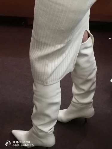 У меня тонкие ноги. Конец обуви не согревается на бедре, поэтому вы просто не тяните его и его красивый сексуальный и легко ходить. Очень хорошо Возьмите ваши ноги.