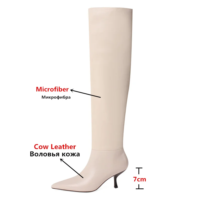 Женские сапоги на шпильке MORAZORA, черные сапоги до колена из натуральной кожи, с острым носком, размер 33-43, зимний сезон 2021