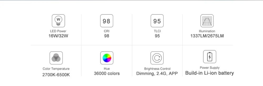 Широкий диапазон CCT от 2700K вольфрама до 6500K светильник дня в качестве ключа, заливки или обода светильник для фильма, трансляции или фотографии.