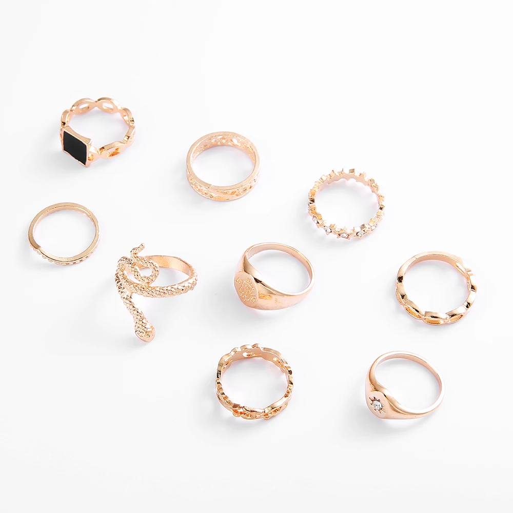 Набор женских винтажных колец, 9 шт.компл., в виде змеи, звезды, суставов пальцев, с сердцем, круглых, свадебных украшений, 20202