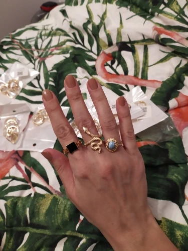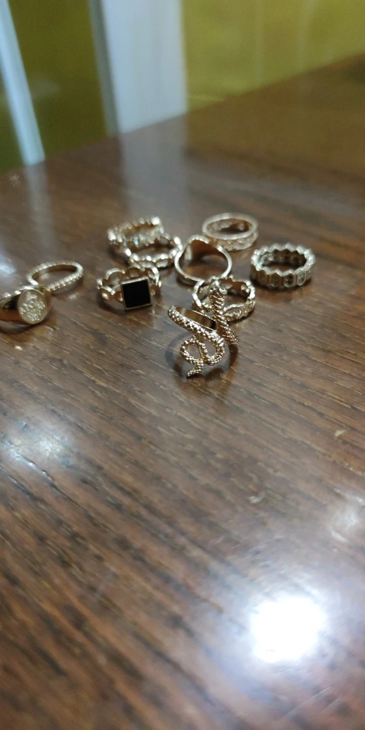 Прикольные кольца, очень красивые. Дошли за 3 недели. Большинство колец большие на мои пальцы, даже на правой руке, где размер 18. Проносила 2 недели, уже сильно стерлась "позолота". За свою цену норм