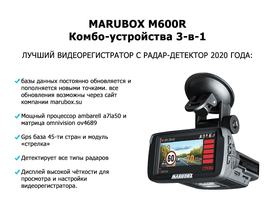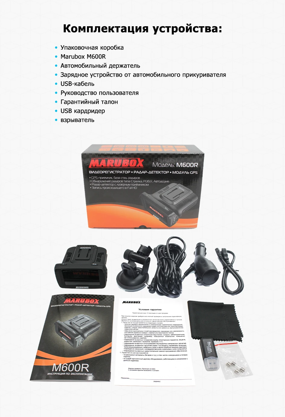 MARUBOX Радар-детектор и GPS-информатор, Автомобильный видеорегистратор, Антирадар 3 в 1, запись Super HD 1296P, детектирование всех современных радаров и лазеров 360, обновление базы камер