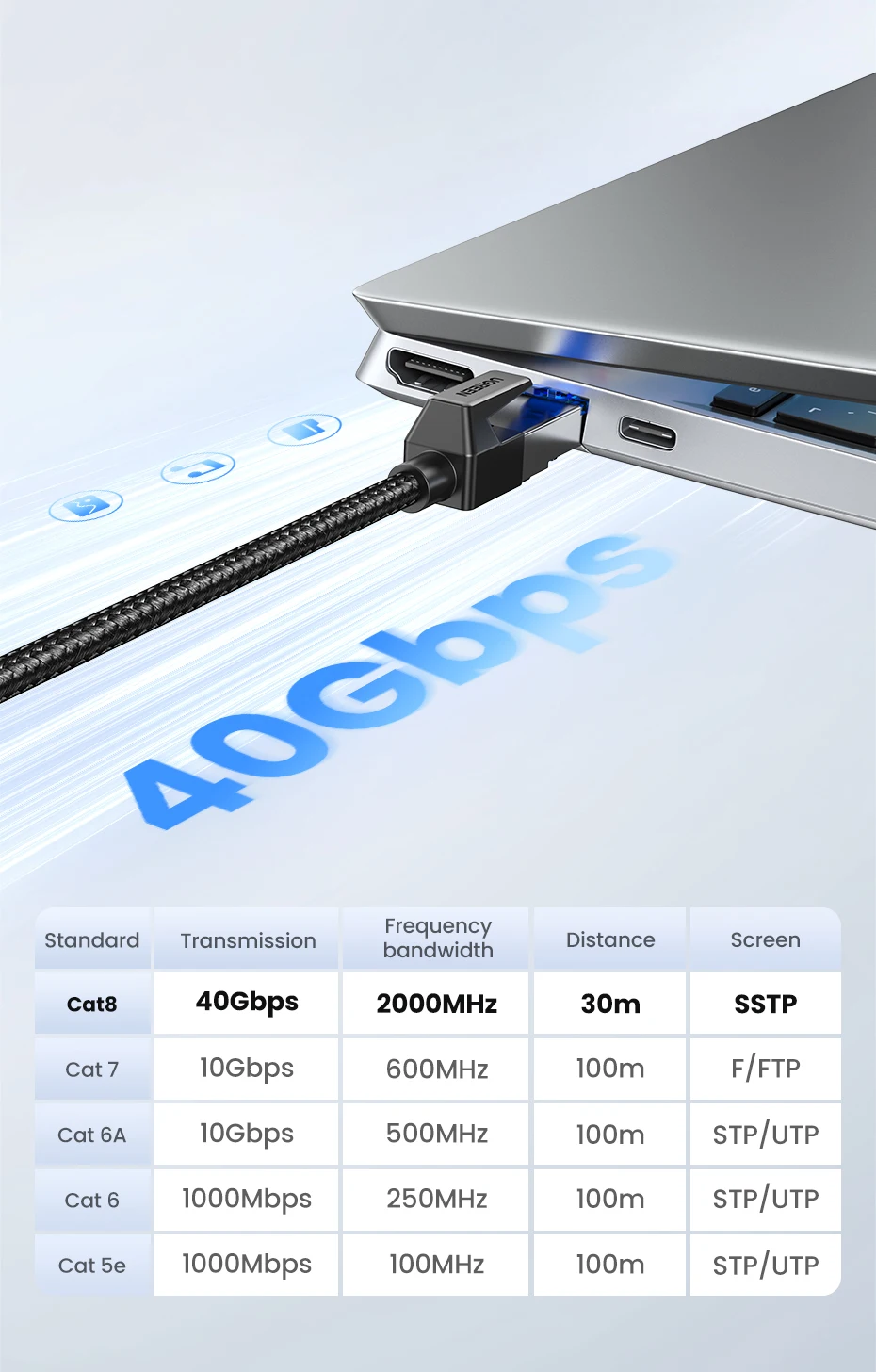 UGREEN Ethernet кабель CAT8 40 Гбитс 2000 МГц CAT 8 сетевой хлопковый Плетеный Интернет Lan шнур для ноутбуков PS 4 маршрутизатор RJ45 кабель