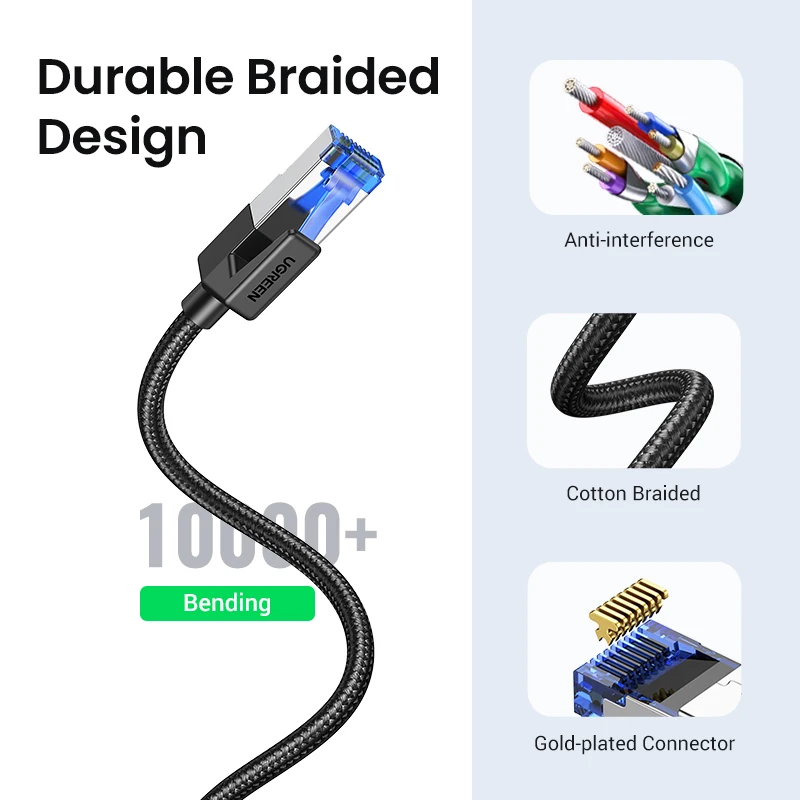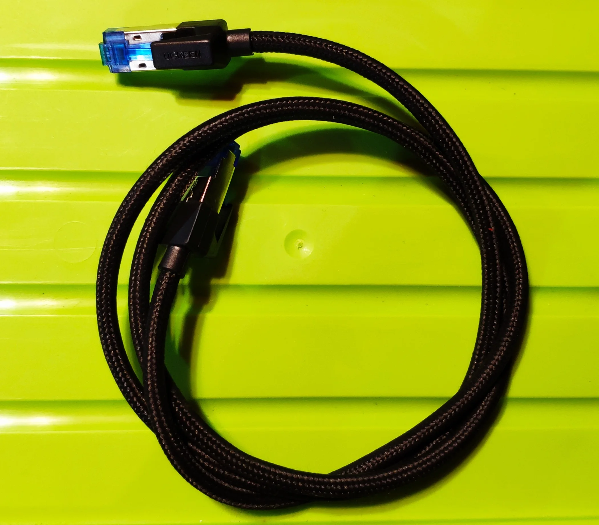 Бренд UGREEN является символом качества. У меня есть провода нескольких типов бренда, и у меня нет жалоб. У меня есть, в частности, 2-метровый usb-кабель для зарядки контроллера PlayStation, и я дал ему битву за кабель и все еще в первый день. С этим ethernet кабелем у меня есть в течение многих лет, так как он уже принимает категории 8 передачи. В данный момент я использую его на PlayStation, и Он творит чудеса.