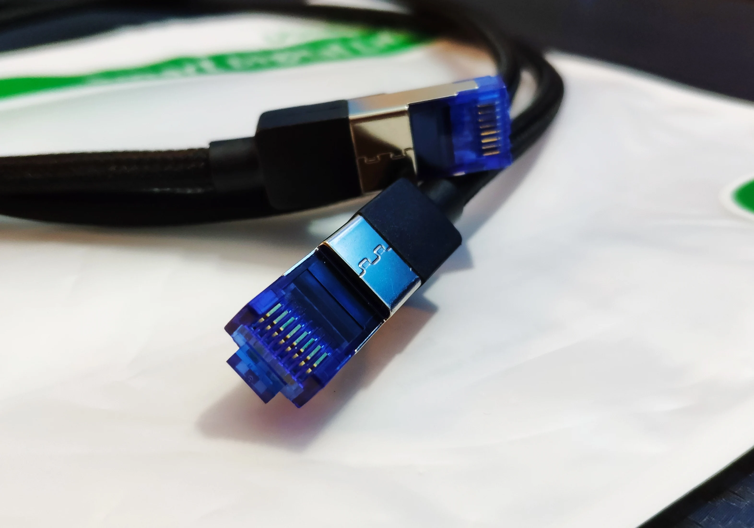 Кабель хороший. Сомнительно конечно что это CAT8 кабель... ведь оплётка здесь далека от стандартов езернета восьмой категории. Здесь экранированные недостаточно хорошее чтобы этот кабель мог называтся кабелем CAT8. Но тем не менее производительность и качество кабеля в целом мне нравится. Кабель жёсткий, защёлки четкие, ощущается он добротно. Использую его для подключения интернета к ПК. Никакого прироста производительности нету конечно, все как было так и есть. Это просто добротный брендовый кабель, хорошей сборки по приятной цене. Максим выдел на нем скорость 244 мб/с что как бы намёк что это как минимум гигабитный кабель, насчёт 40 гиг... это сомнительно, но проверить больше увы возможности нет и наверное за жизнь и не будет. Так что здесь остаётся верить ugreen на слово. Доставка была обычной, 19 дней на новую почту. Спасибо за товар