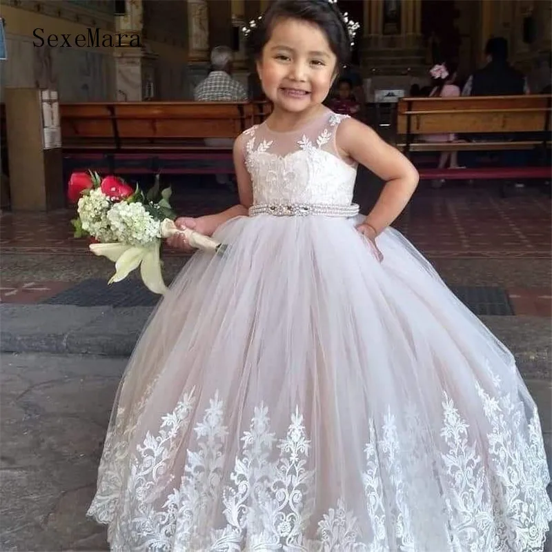 Роскошные платья для девочек с жемчужинами и цветами, бальное плать...