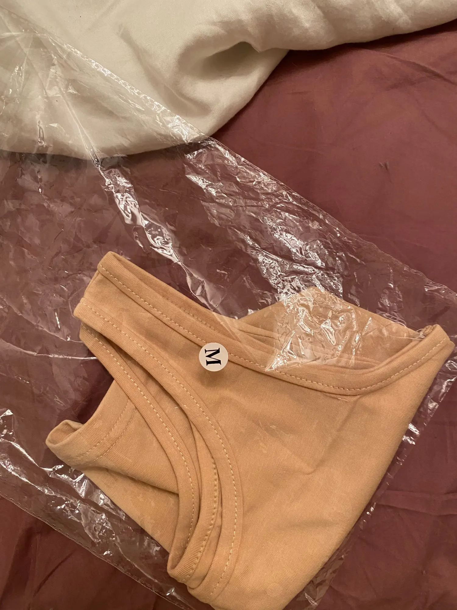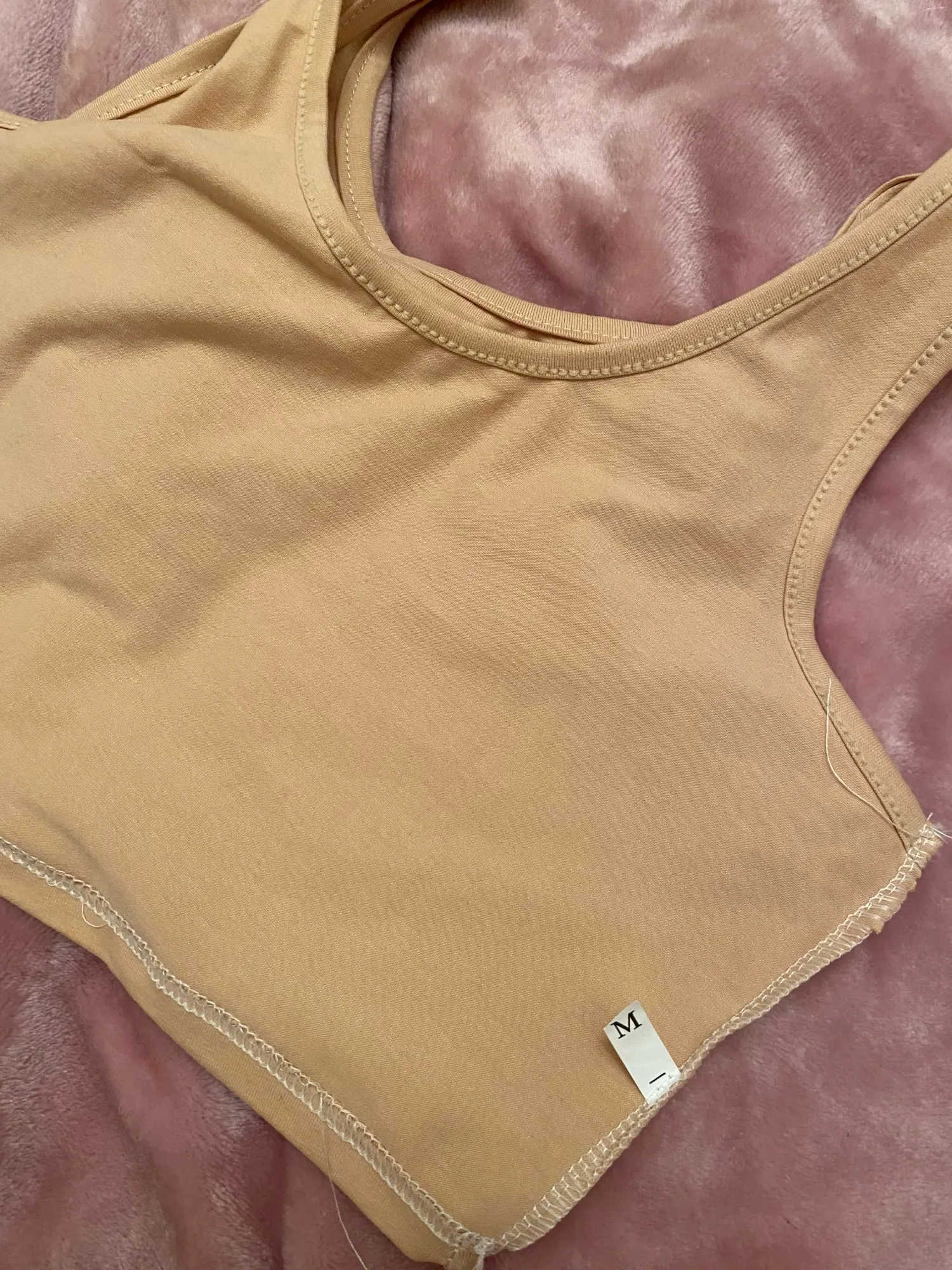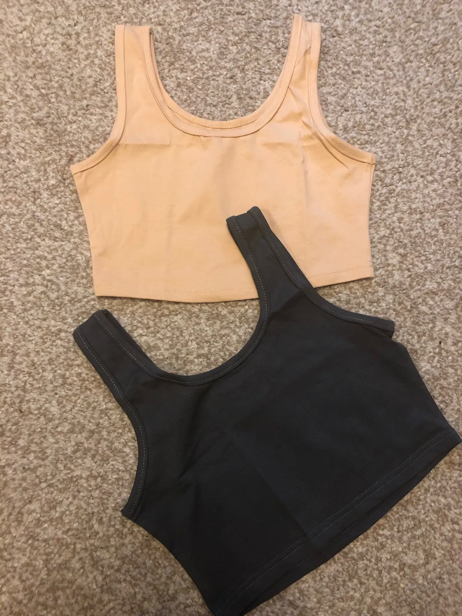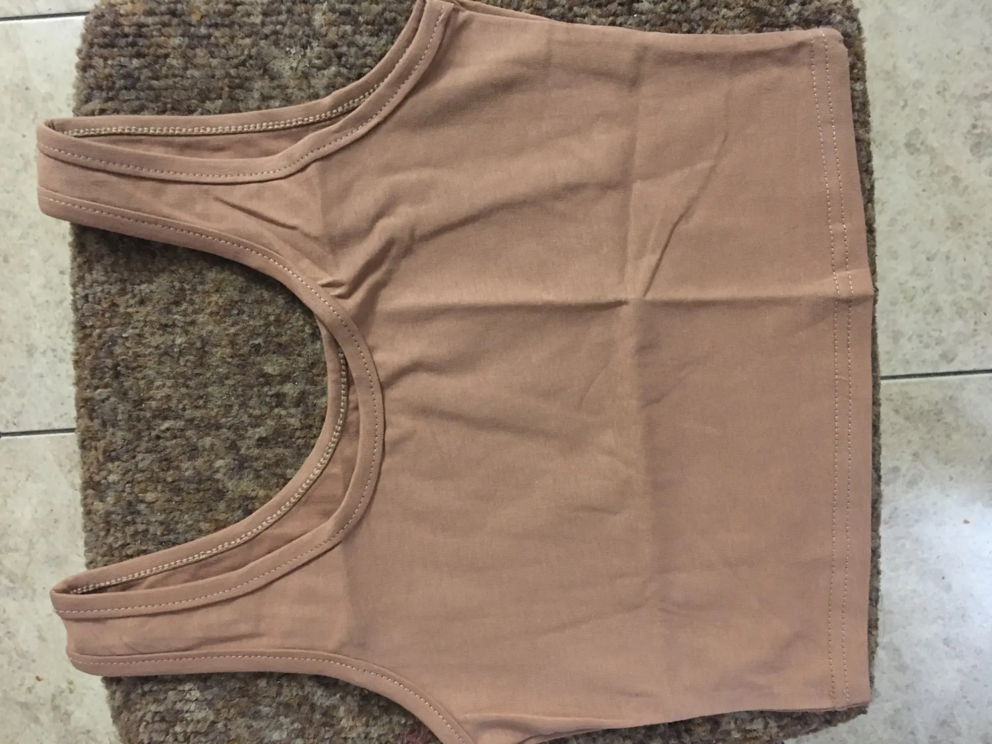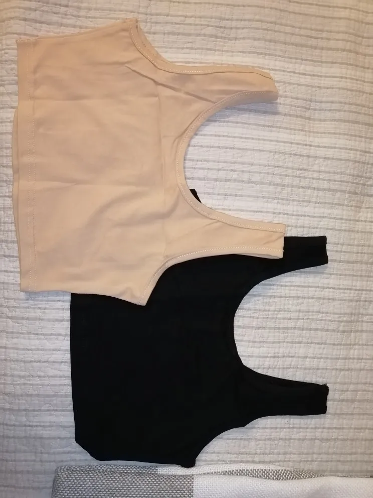 Неплохие топы, строчки ровные, немного нитки торчат. На бежевом есть небольшое пятнышко, должно отстираться. Топы тонкие, эластичность средняя. Бежевый больше телесного цвета, чем на фото. На 75B и рост 164 заказала S, думаю М было бы лучше. S чуть коротковат, заказчивается прямо под грудью. Дошли недели за 2 в Мск по почте России.