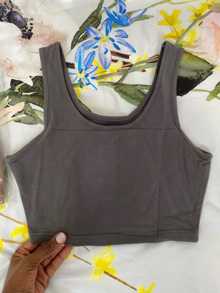 Чёрный топ оказался моим любимым. Он хорошего качества и не просвечивает. Также нитки не торчат. Советую.