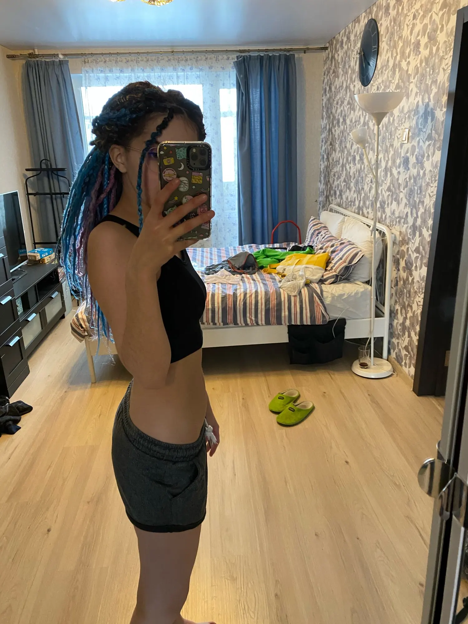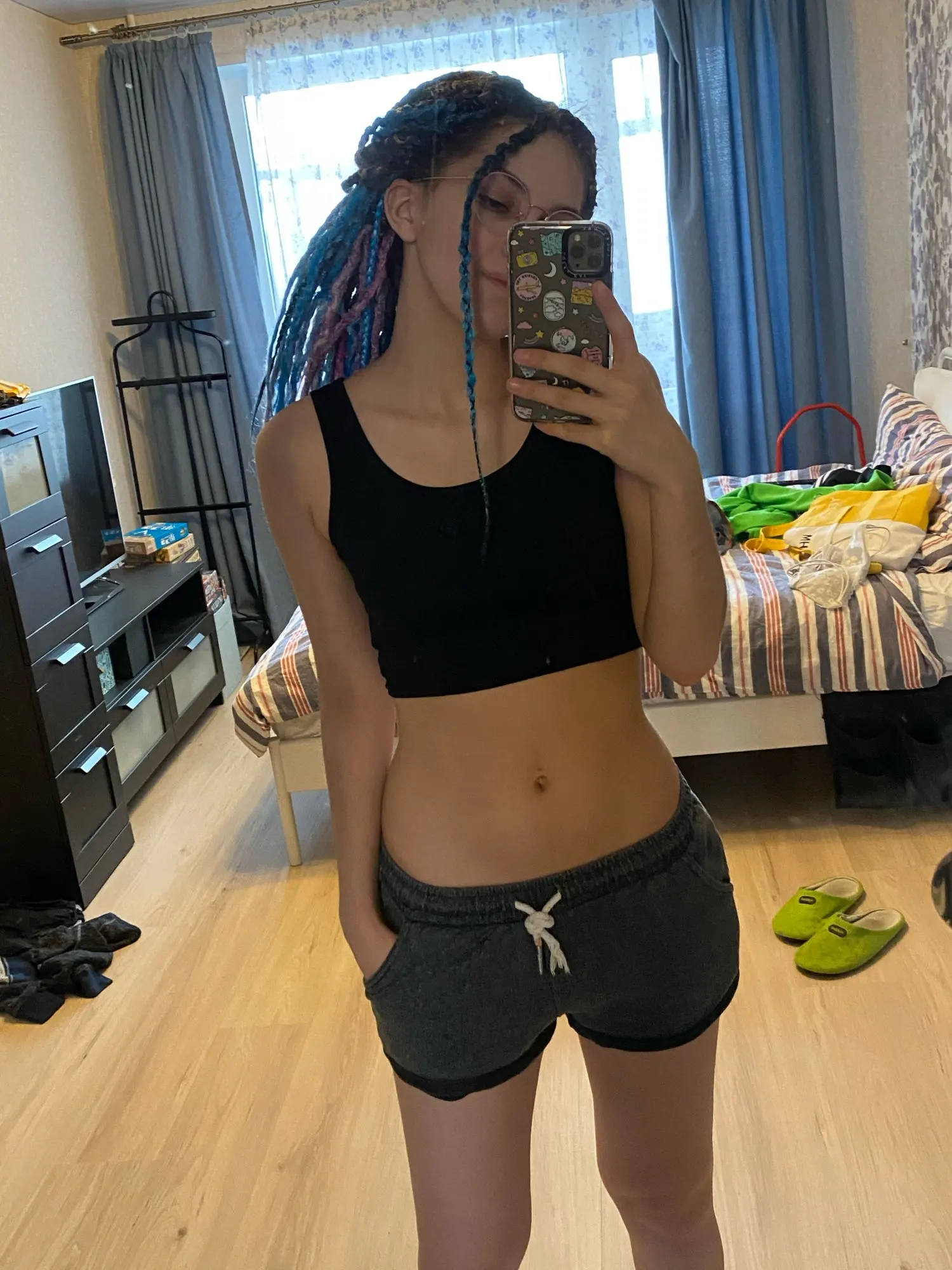 отличный топ, не сильно короткий. мне с моим нулевым размером только с лифаком носить, смотрится классно. качественно прошито)