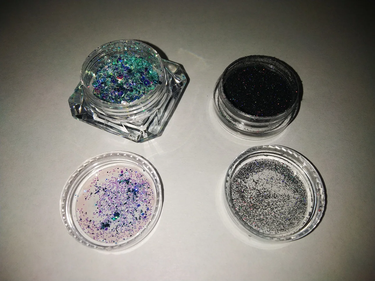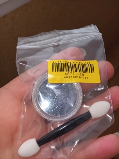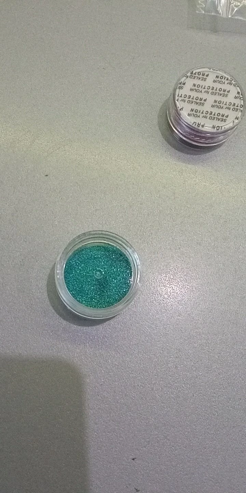хорошо голографический блесточки наполняемость баночки десь половина попробую дома втерти в липкий слой і попробую тери як втірку потім напишу дополнительно а так в принципі нравиться наполняемость половину десь баночки мелкий порошок цвет красивий такий як заявляно на картинки продавця рекомендую