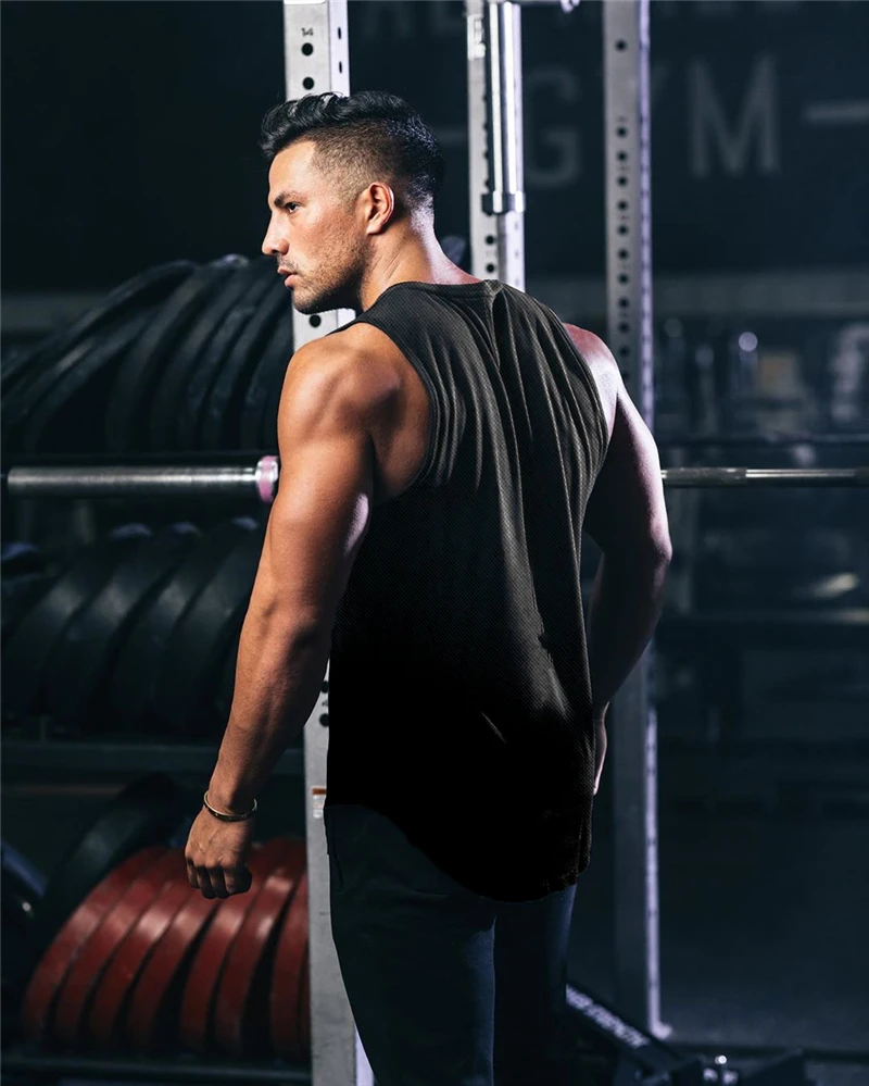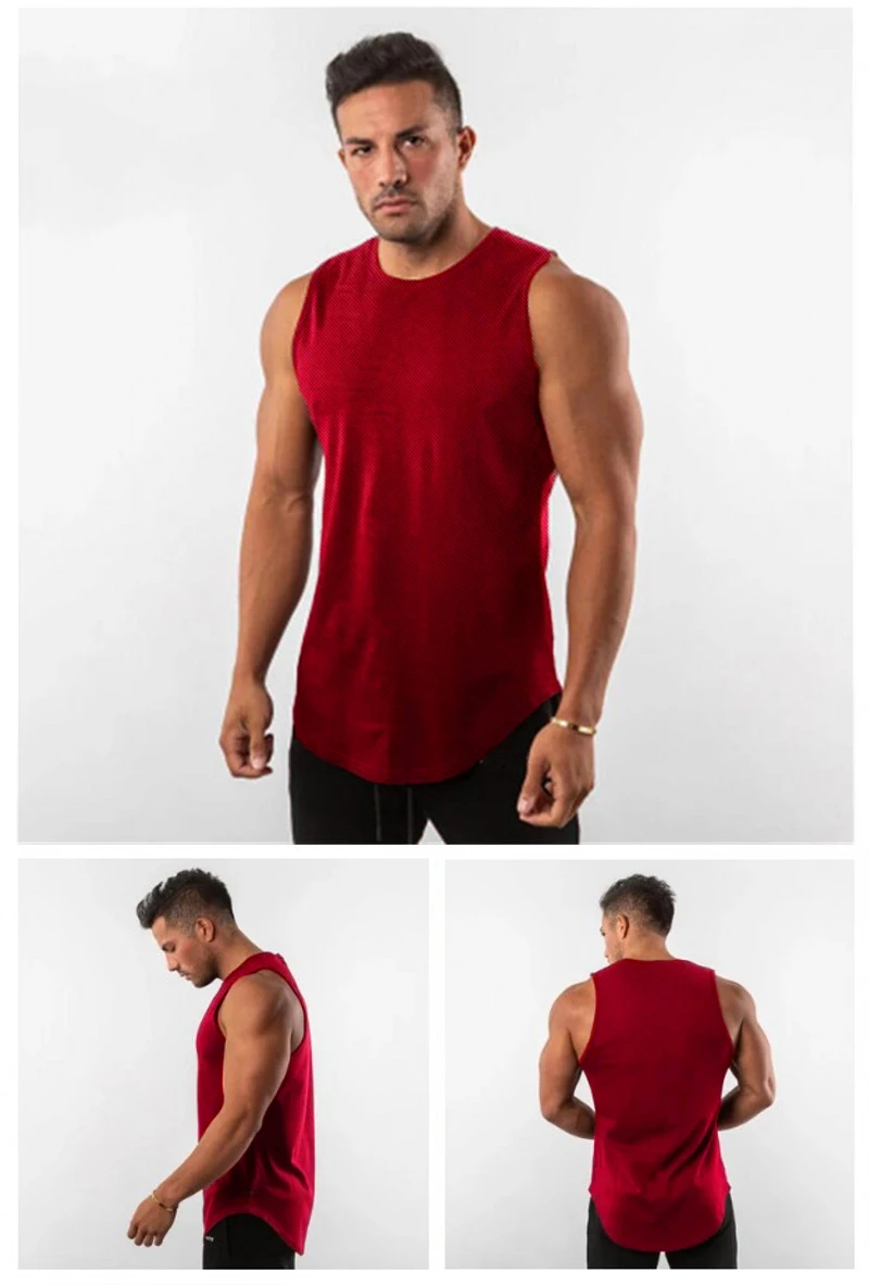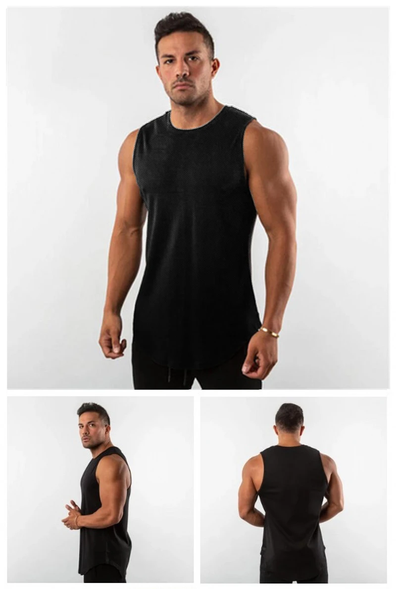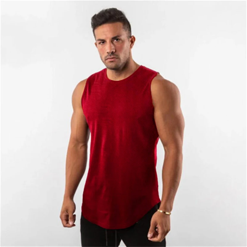 Мужская однотонная сетчатая майка для бега, летняя быстросохнущая Спортивная одежда для бодибилдинга, майка для фитнеса, майка без рукавов, футболка, спортивные майки