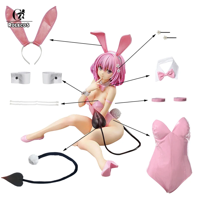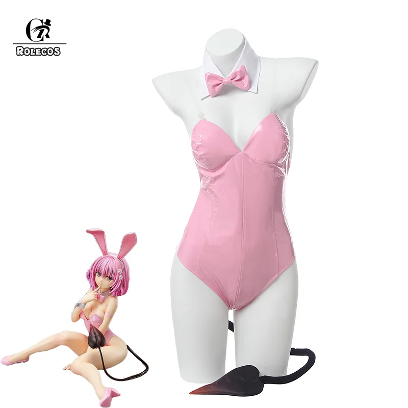 ROLECOS Momo Belia Deviluke, сексуальный костюм кролика для косплея, аниме, косплей в любовь-Ru, темный костюм, розовый комбинезон, маленький хвост дьявола