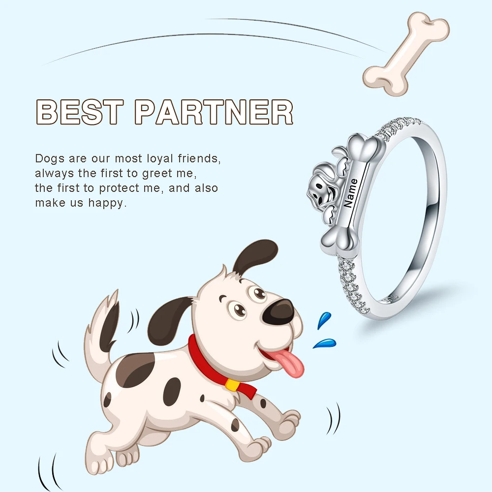 925 пробы кольцо с фианитом и гравировкой имени собаки, персонализированное ювелирное изделие