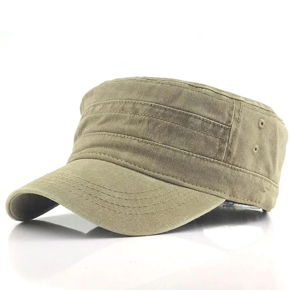 Мужская винтажная бейсболки из промытого хлопка шапка с плоским верхом, Классическая Регулируемая более толстая крышка, в стиле милитари