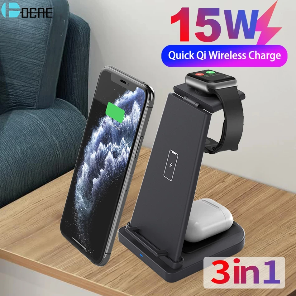 Беспроводное зарядное устройство Qi 15 Вт для Apple Watch 6 7 Airpods Pro 3 в 1, подставка для быстрой зарядки для iPhone 13 12 11 XS XR X 8 Samsung S20 S10