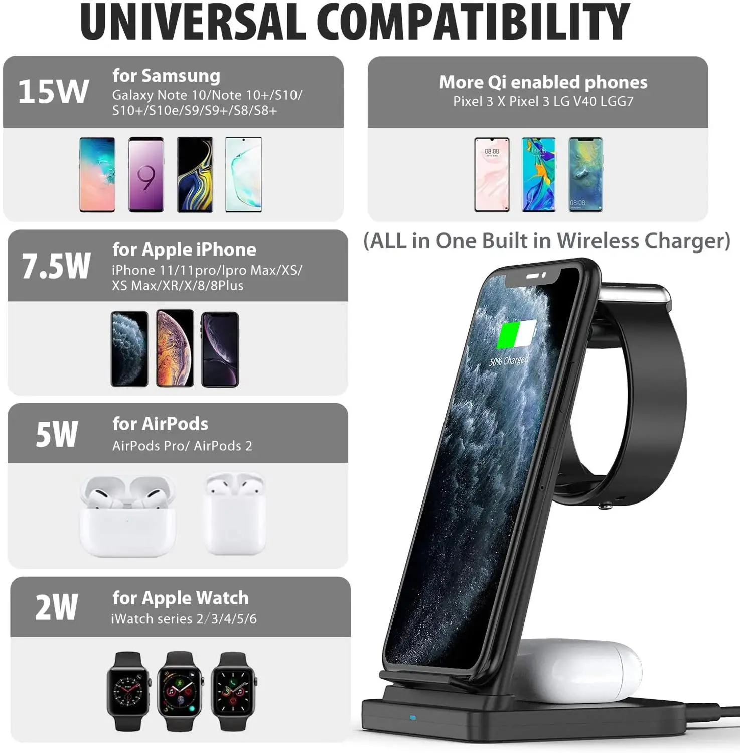 3 в 1 Беспроводное зарядное устройство для iPhone 11 XR Xs AirPods ...