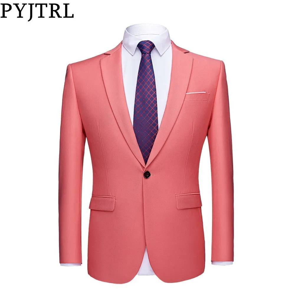 PYJTRL мужской качественный цветной деловой приталенный Повседневный Блейзер зеленый фиолетовый розовый цвета шампанского желтый черный свадебный или Выпускной костюм куртка