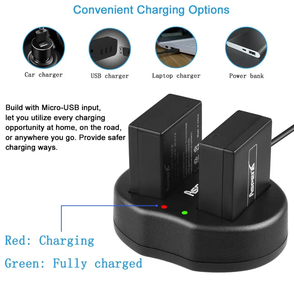 ▷Compatible модели:DMC-FZ1000, DMCFZ1000, FZ1000, DMC-FZ200, DMCFZ200, FZ200, DMC-G7, DMCG7, G7, DMC-G6, DMCG6, G6, DMC-G5, DMCG5, G5, DMC-G5K, DMCG5K, G5K, DMC-GH2, dmc2, dmc1000 DMC-GH2K DMCGH2K, GH2K, DMC-GH2S, DMCGH2S, GH2S,DMC-GX8, DMC-FZ300▷Package включает в себя:-- 1/2/3/4 x DMW-BLC12 батареи (на ваш выбор)-1 х USB двойное зарядное устройство-- 1 х микро кабель-- 1 х Руководство▷Features:1. Литий-ионные аккумуляторы премиум класса2. Высокая плотность энергии, долгий срок службы, без памяти3. Дополнительная мощность, больше снимков для ваших камер
