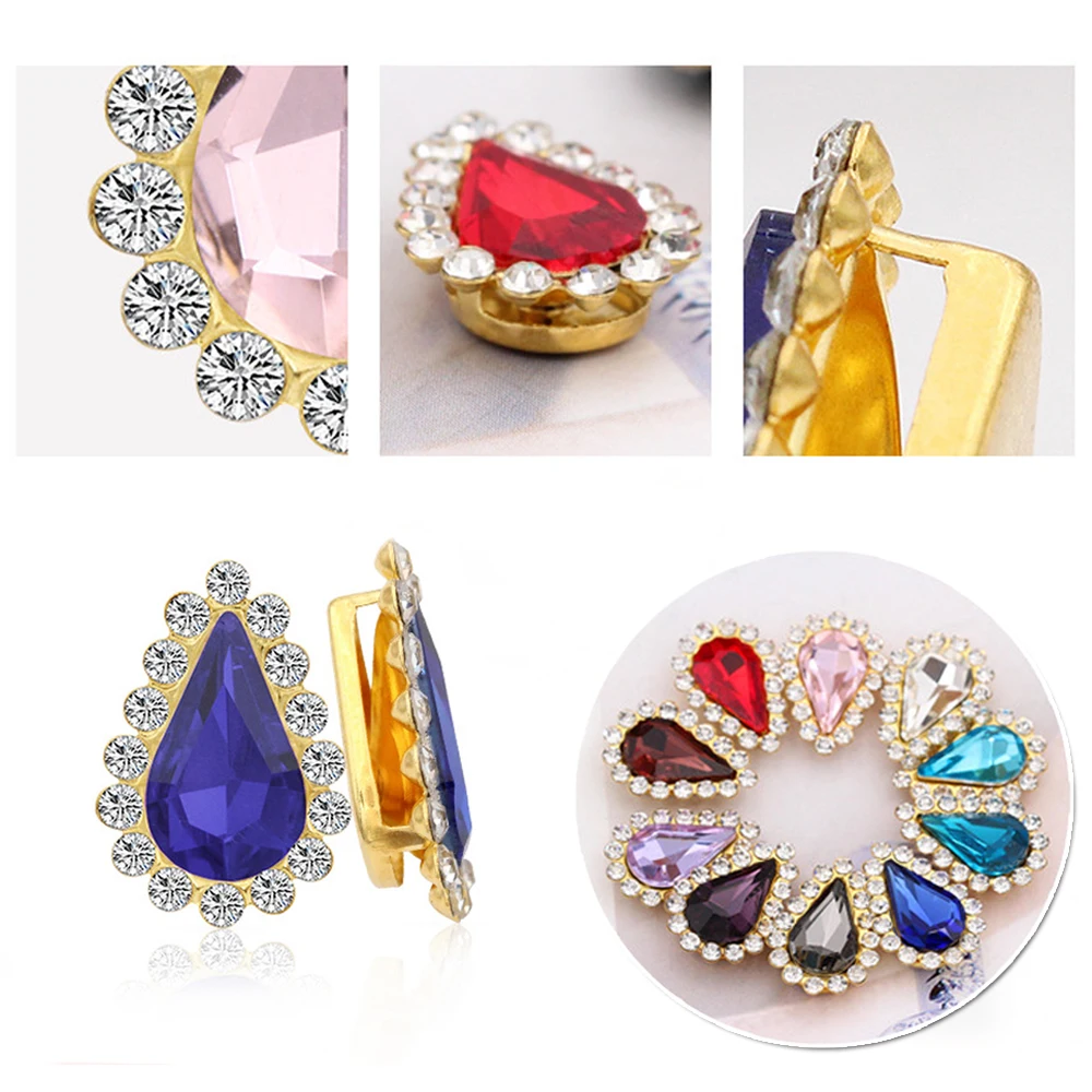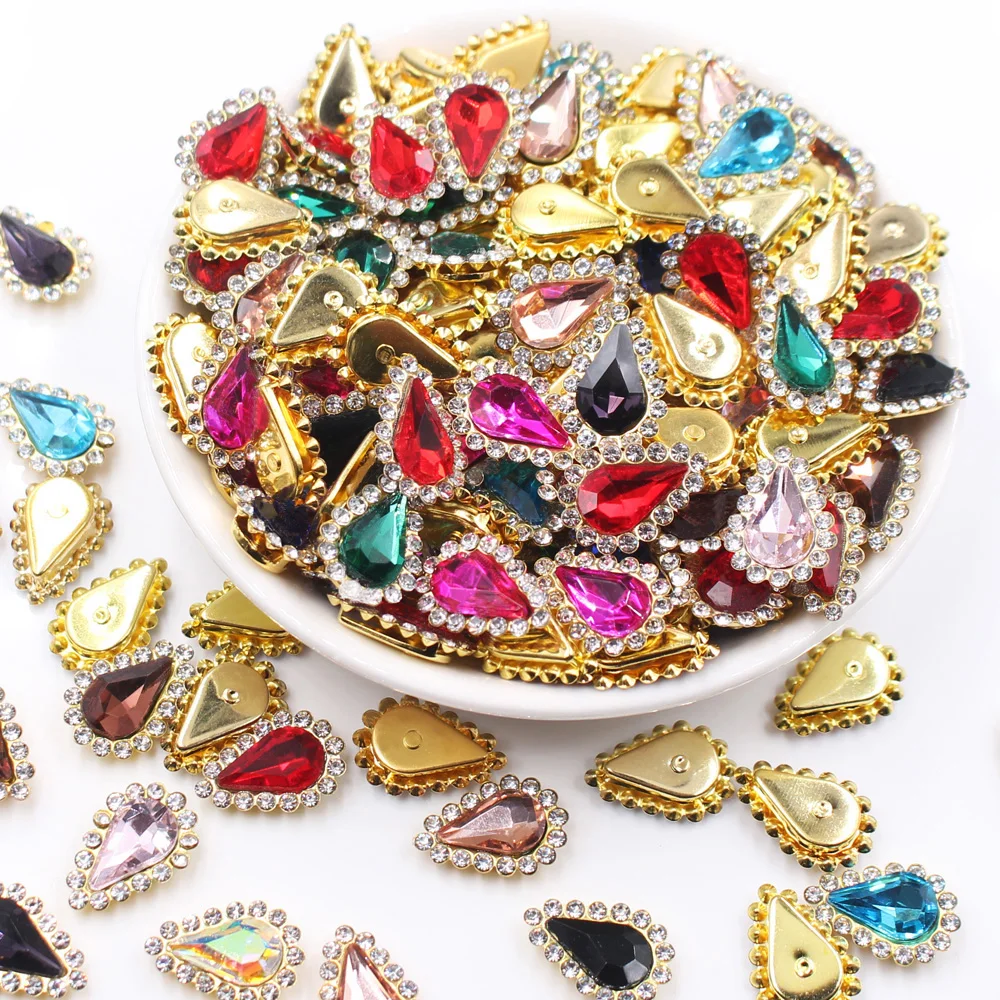 Блестящие стразы в форме капли 8X13 мм, пришивные стразы с золотым ...