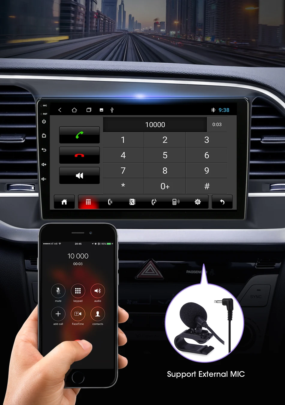 Поддержка соединения Bluetooth, набора телефона Bluetooth, встроенного микрофона радио, даже если в окружающей среде шумно, Радио поддерживает подключение внешнего микрофона, что по-прежнему может гарантировать качество вашего звонка.