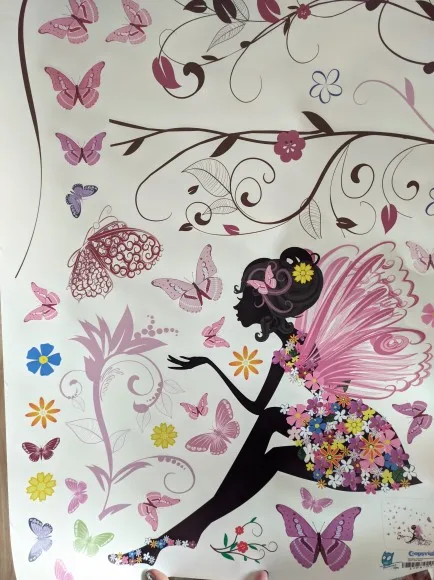 Бабочка, цветок, фея, настенные наклейки для детской комнаты, украшения стен, спальни, гостиной, детская, для девочек, наклейка, плакат, фреска