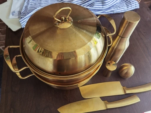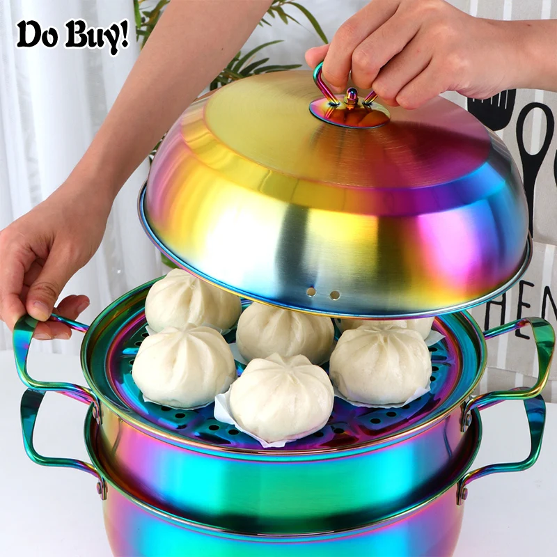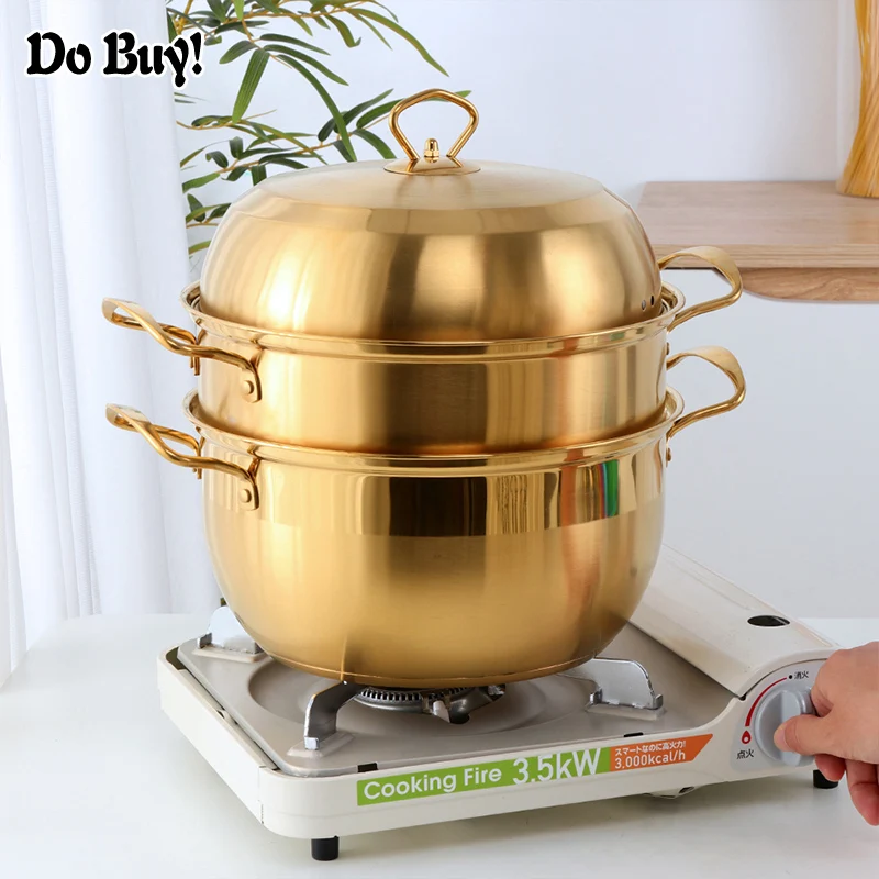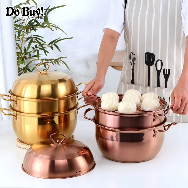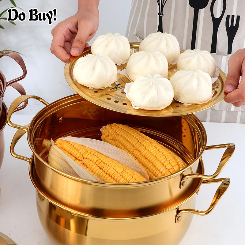 Кастрюля-пароварка из нержавеющей стали, 3 слоя, золотая, 1 шт.