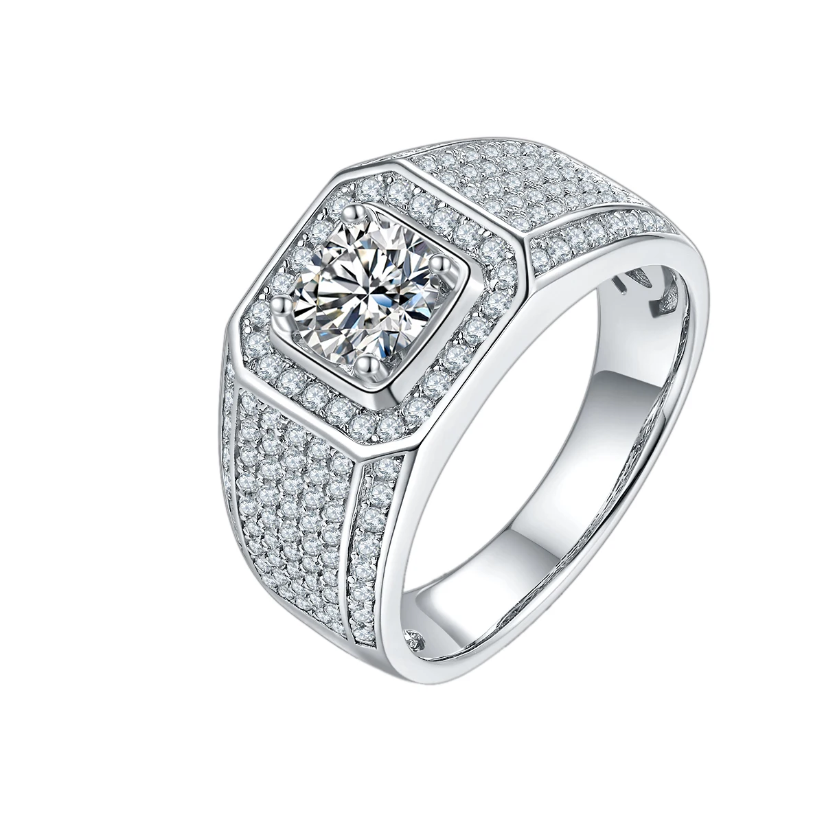 Gem балетки 925 пробы серебро Муассанит кольцо для Для мужчин сваде...