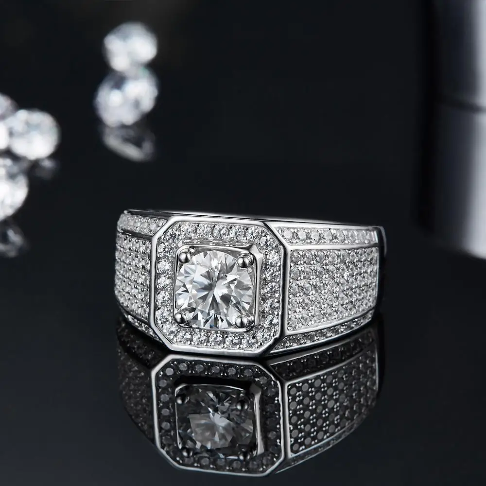 Кольцо мужское из серебра 925 пробы с муассанитом 2,0 карата, 8 мм