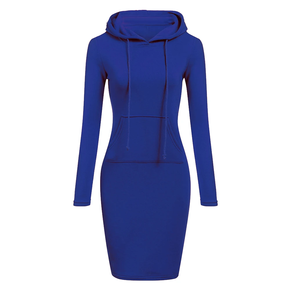 Осенне-зимнее платье с капюшоном для женщин, женская толстовка с капюшоном, повседневные платья, флисовые однотонные толстовки с капюшоном и карманами