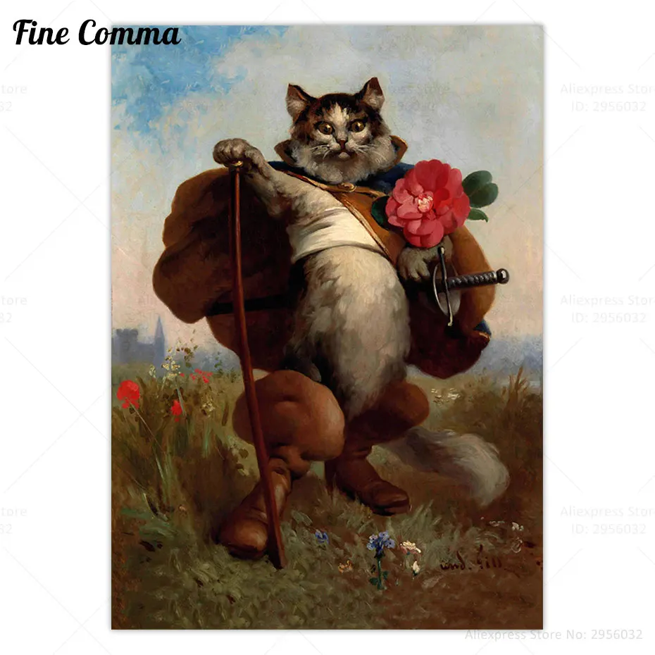 Винтажный постер Кот в сапогах, настенное художественное полотно, принт под старину, живопись маслом Кот, Le Chat Botte, Андре Гилл, Французская сказка, художественный Декор