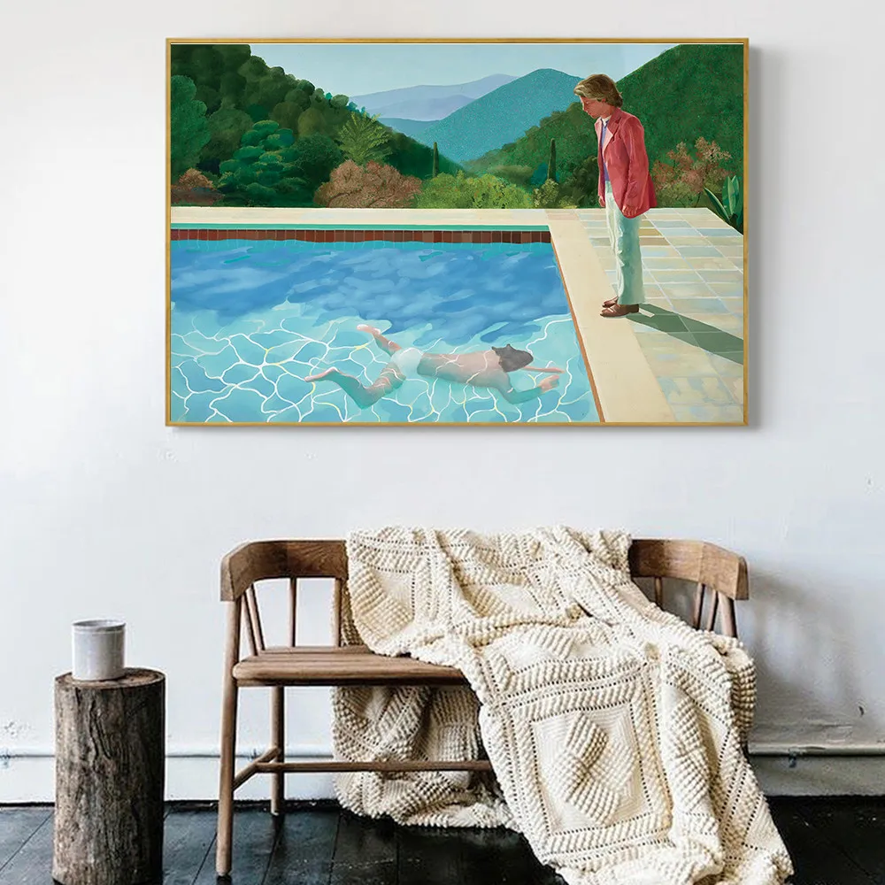 David Hockney (бассейн с двумя фигурами), холст, живопись, плакаты, принты, квадратные картины, настенное искусство, картина для гостиной, домашний декор
