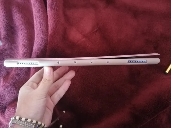 Продукт прибыл примерно через две недели, цвет немного более Непрозрачный на фотографии, он не такой пастельно-розовый, но мне понравилось, слюда и ручка прибыли, хорошо закрывает полный планшет, Единственное, что мне не понравилось, это то, что крышка не закрывается на 100% в углу, она слегка поднимается, общение с продавцом было хорошим, я ошибся при покупке чего-то и продавец дал мне решение