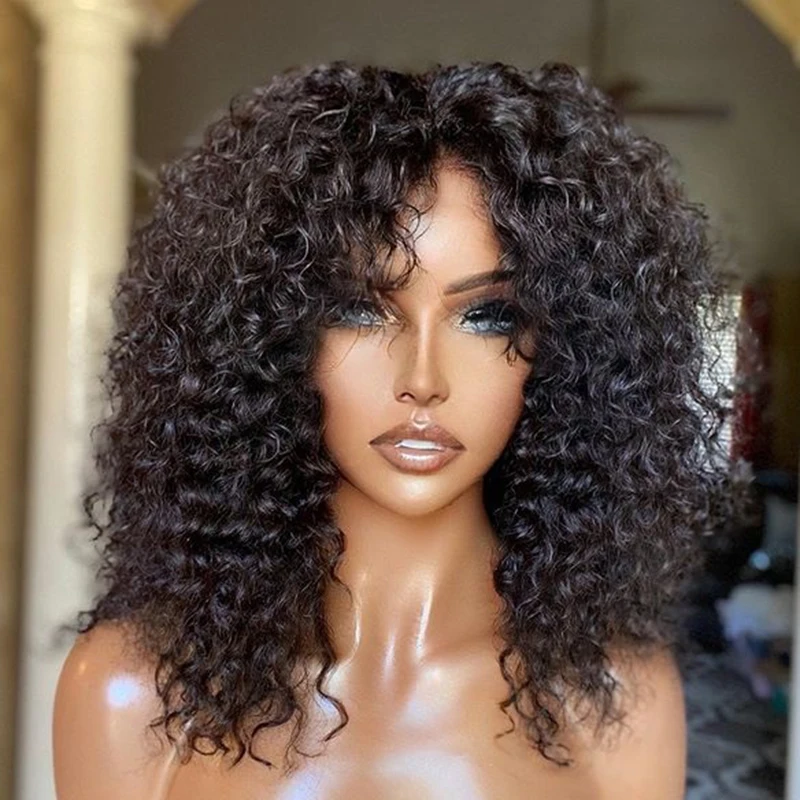 Монгольский короткий Боб натуральные вьющиеся 13x6 кружевные передн...