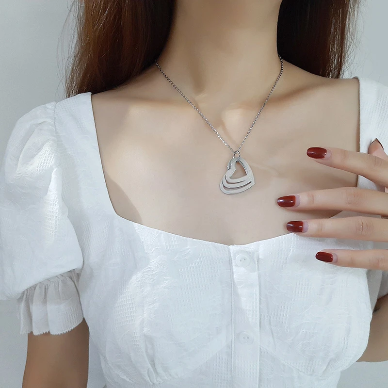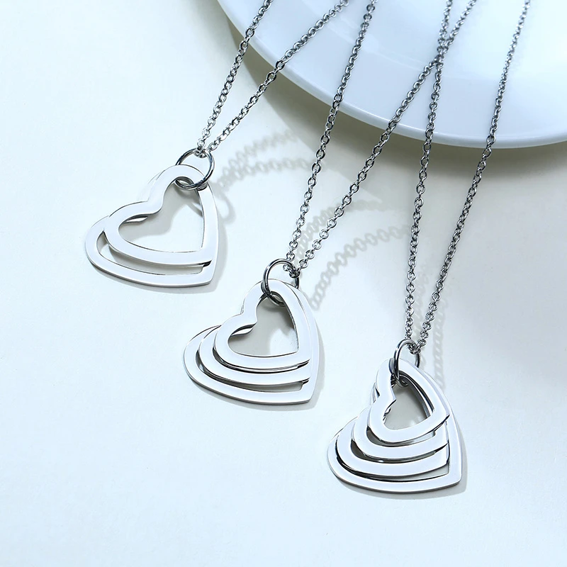 Ожерелье женское из нержавеющей стали, с гравировкой в виде сердца