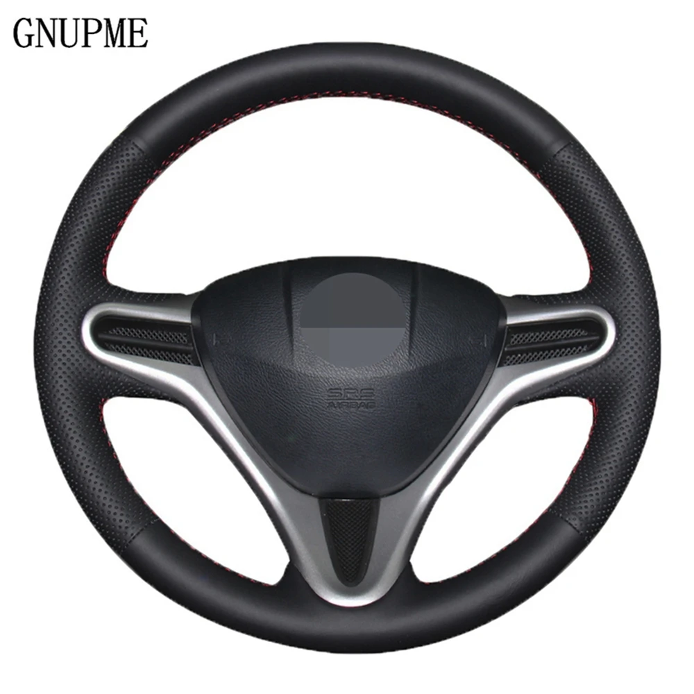 Рука сшитый черный искусственной кожи чехол рулевого колеса автомобиля для Honda Fit городской 2009-2013 Джаз 2009-2013 Insight 2010-2014