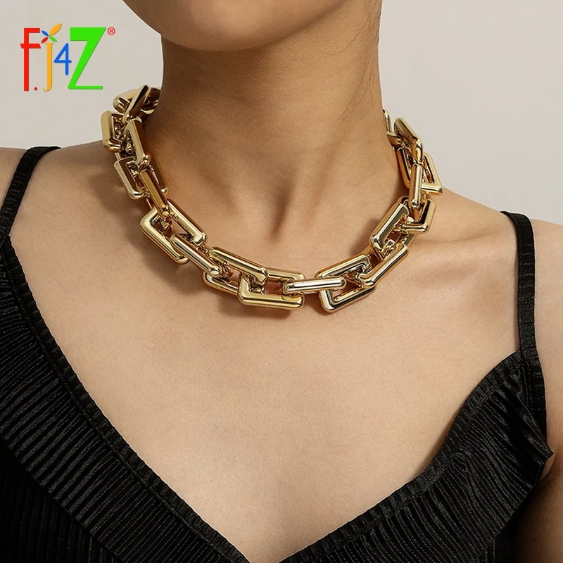 Женское Ожерелье-чокер F.J4Z, массивное кубинское ожерелье в стиле панк, толстая квадратная цепочка, ювелирные изделия, подарки