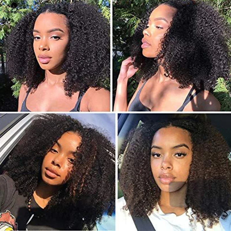 Парик из натуральных человеческих волос 4B 4C, бразильские афро кудрявые вьющиеся 250 плотные натуральные черные натуральные волосы для черных женщин