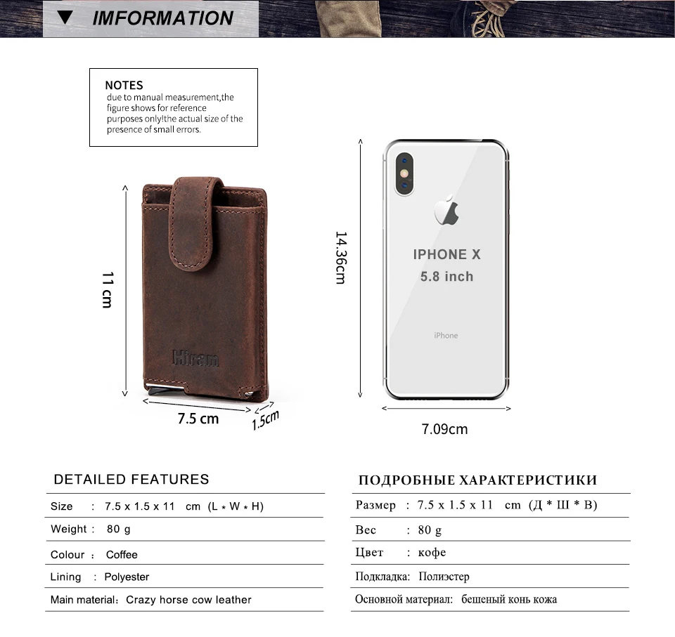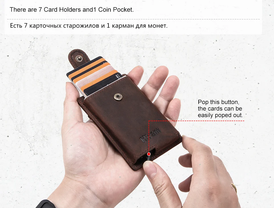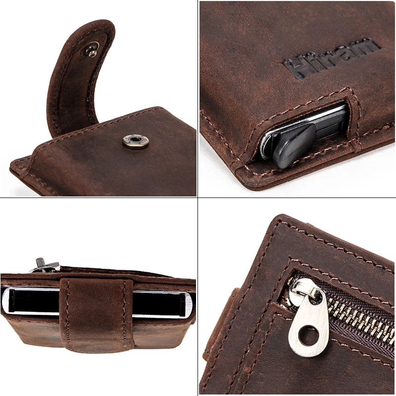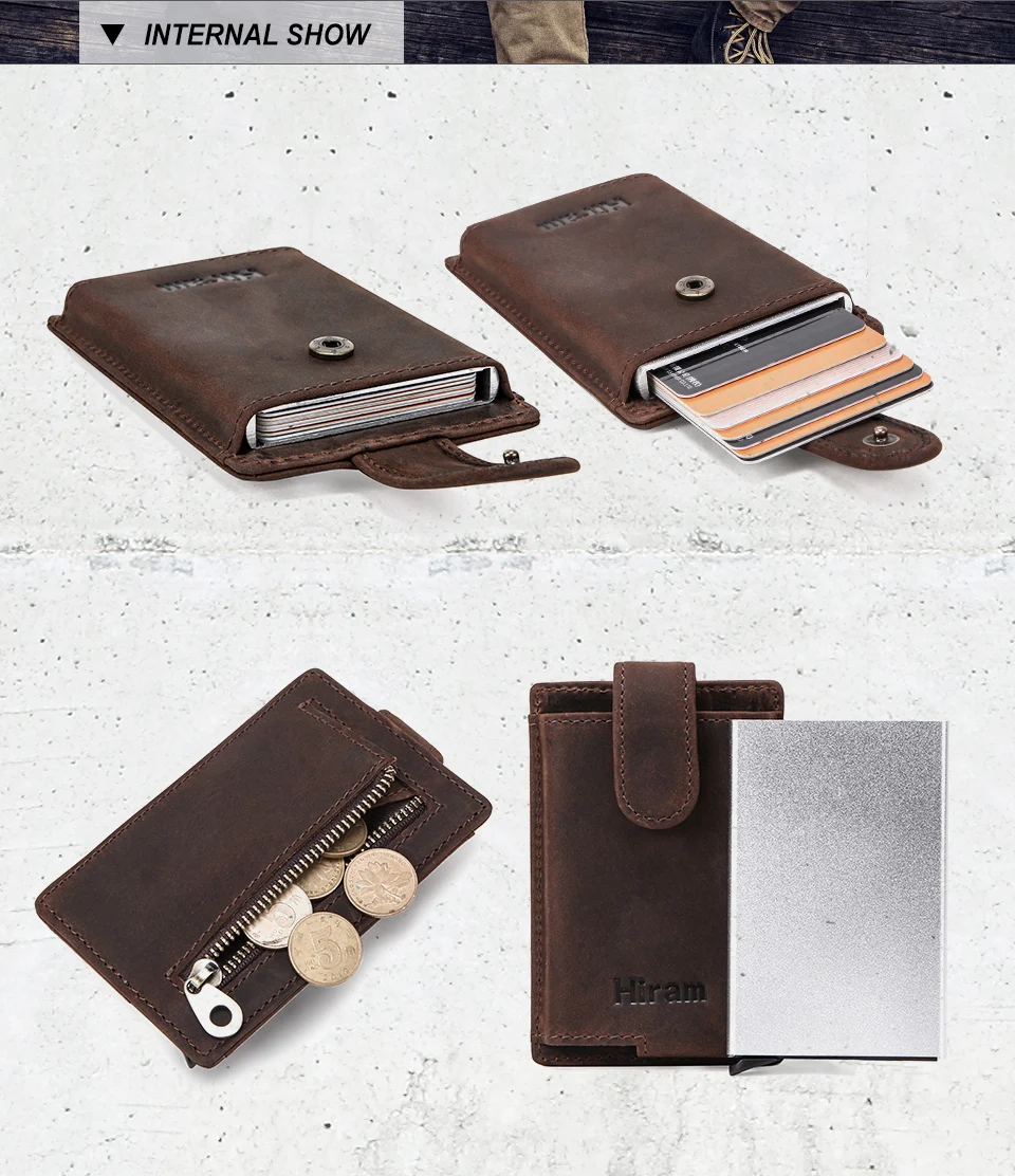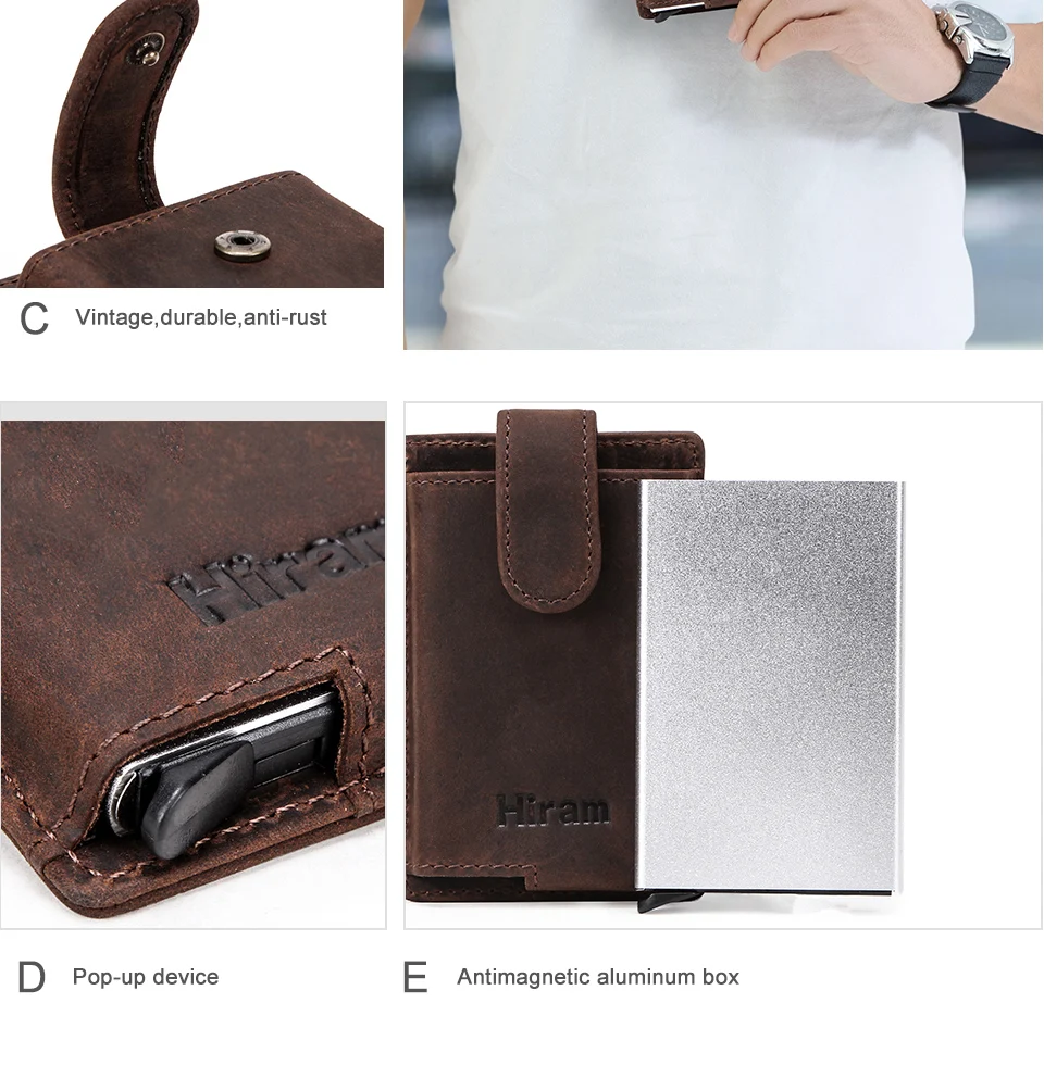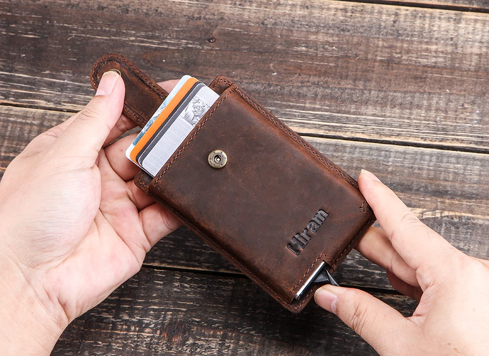 Держатель для карт для кредитных карт Hiram мужские металлические, винтажные алюминиевые кошельки из кожи Крейзи Хорс, маленькие кошельки для мелочи, чехол для удостоверения личности