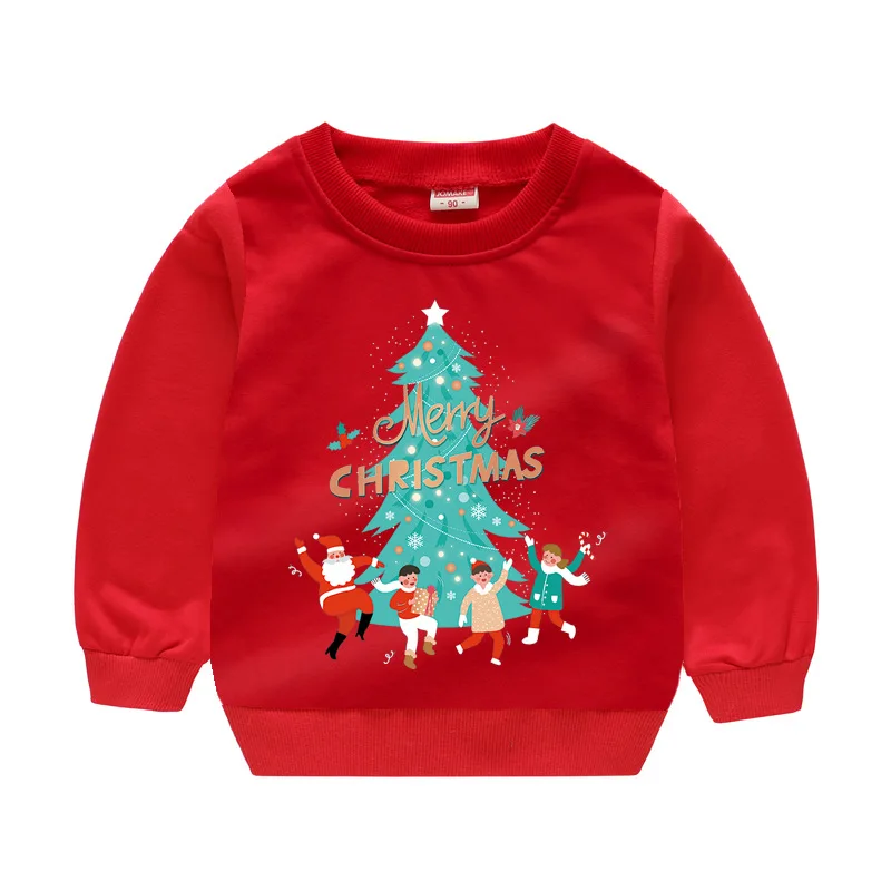 Свитшот с круглым вырезом для мальчиков и девочек, Рождественский красный свитшот с изображением снеговика, Санта Клауса, новогодней елки