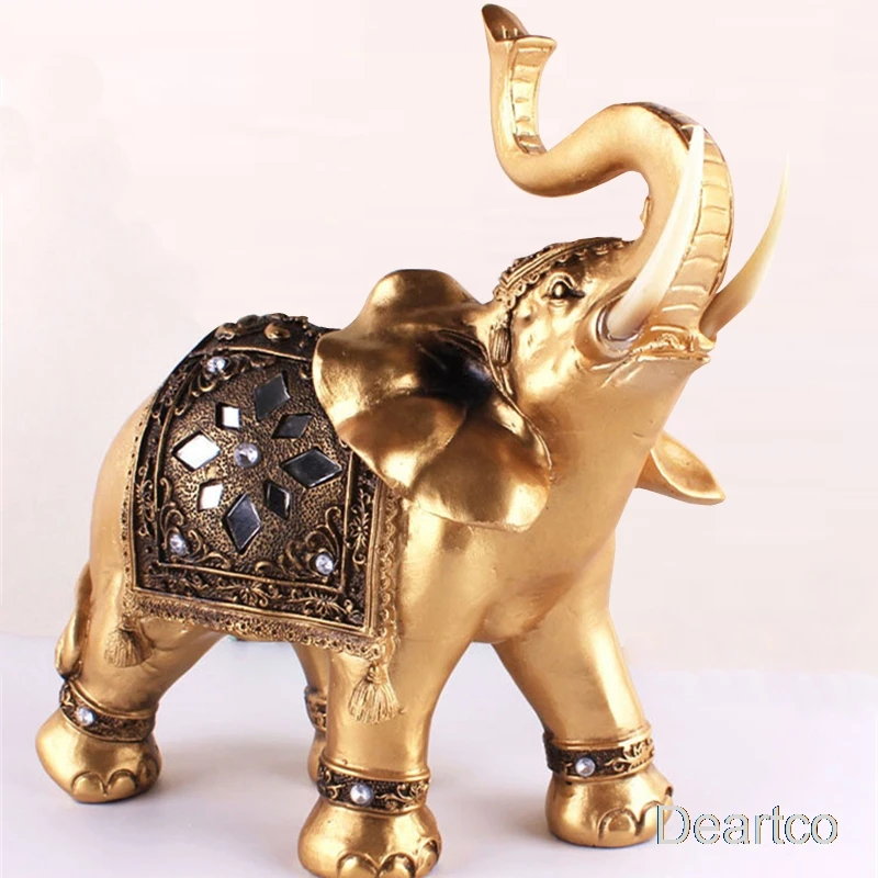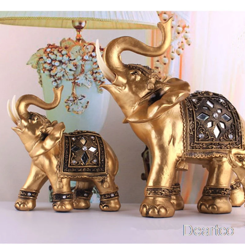 Статуя для украшения дома со слонами, Подарочная статуя из золотой смолы, декор на удачу, статуэтка слона для интерьера, поделки, украшения