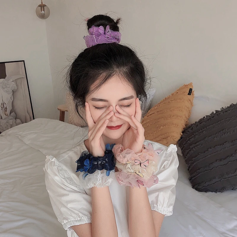 Корейские женские эластичные кружевные блестящие резинки для волос ...