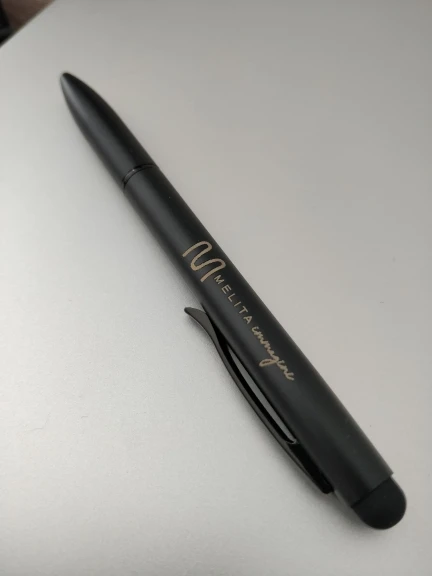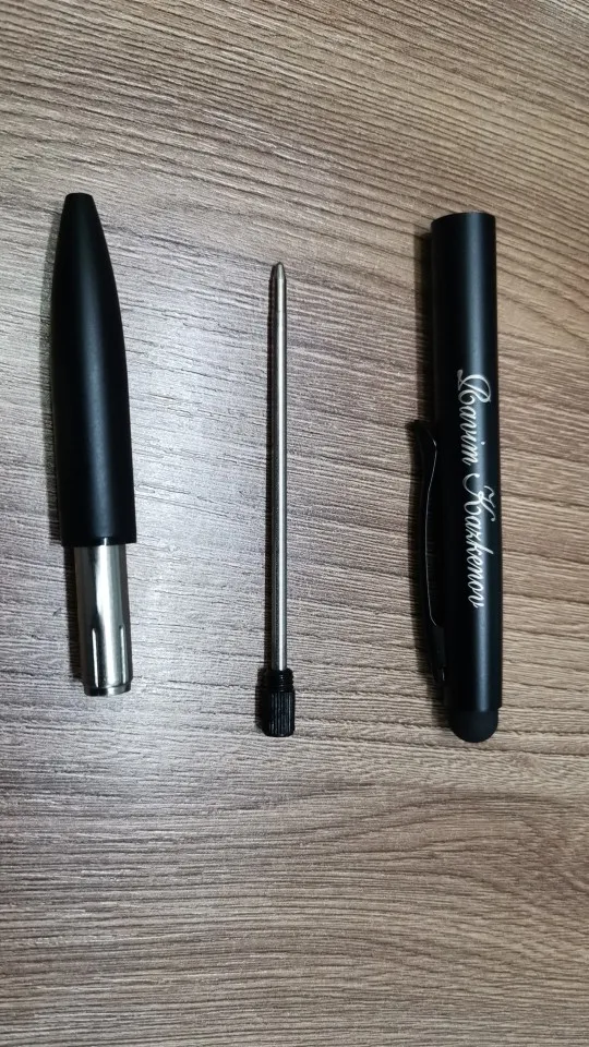 Очень неплохие металлические ручки со стилусом (брал оба цвета). Приятные на ощупь, достаточно увесистые, хорошо сидят в руке. Если, действительно, заказать логотипчик, допустим, с именем, то приятный подарок получится.