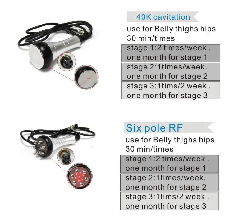С мощной звуковой волновой головкой, мощная звуковая волна 40 кГц может излучаться для вибрации жировых клеток на высокой скорости и производства многочисленных вакуумных воздушных карманов внутри и снаружи жировых клеток, робутно воздействуют на жировые клетки для генерации интровертного взрыва и распадают триглицерид в Глицерол и свободные жирные кислоты. Затем волны на частоте 1м Гц применяют для истощения интегрированного глицерина и свободных жирных кислот через гепатоэнтеральную циркуляцию. Наконец, вакуум и электрод энергии используются для позиционирования и подтяжки жира. В физике она известна как "кавитация". Микропора интровертированный взрыв внутри и снаружи клетки может привести к усиленному молекулярному движению и более высокому уровню энергии, и это, наконец, вызовет разрыв жировых клеток и тем самым добиться эффекта бодибилдинга и потери веса.
