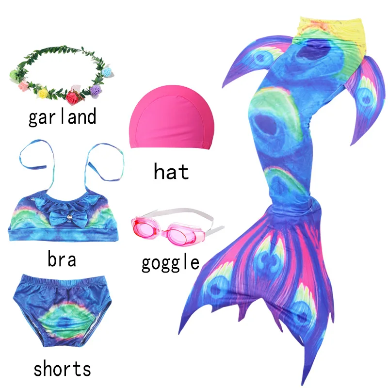 Halloweem детей девочек купальный платье Русалочки для девочки шорты топ плавник очки шляпа костюмы с хвостом Русалочки купальный костюм