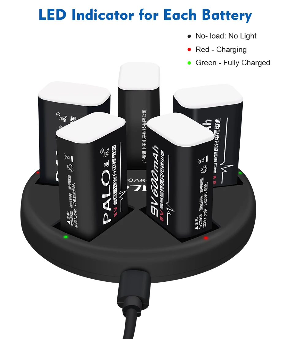 PALO светодиодный смарт-зарядное устройство для 9 В литий-ионная NIMH аккумуляторная батарея 6f2 2 аккумуляторная батарея 9 в зарядное устройство