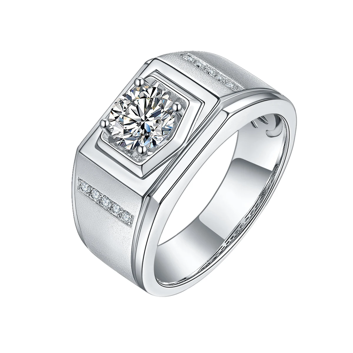 Мужское кольцо GEM'S BALLET 1Ct 6,5 мм с бриллиантом Moissanite, 92...